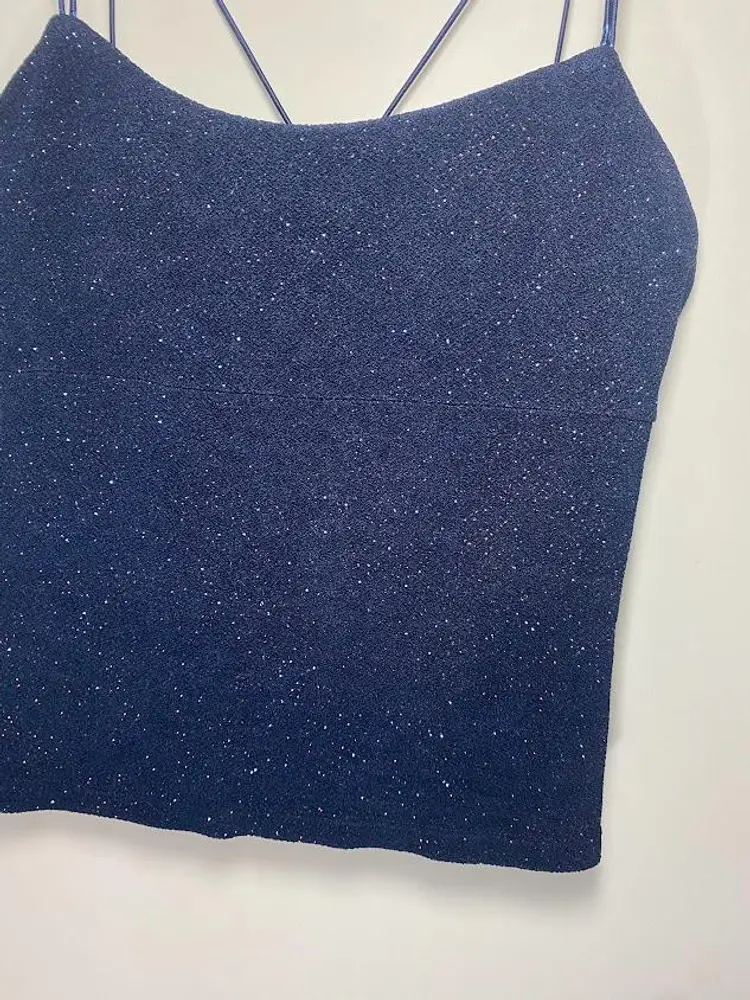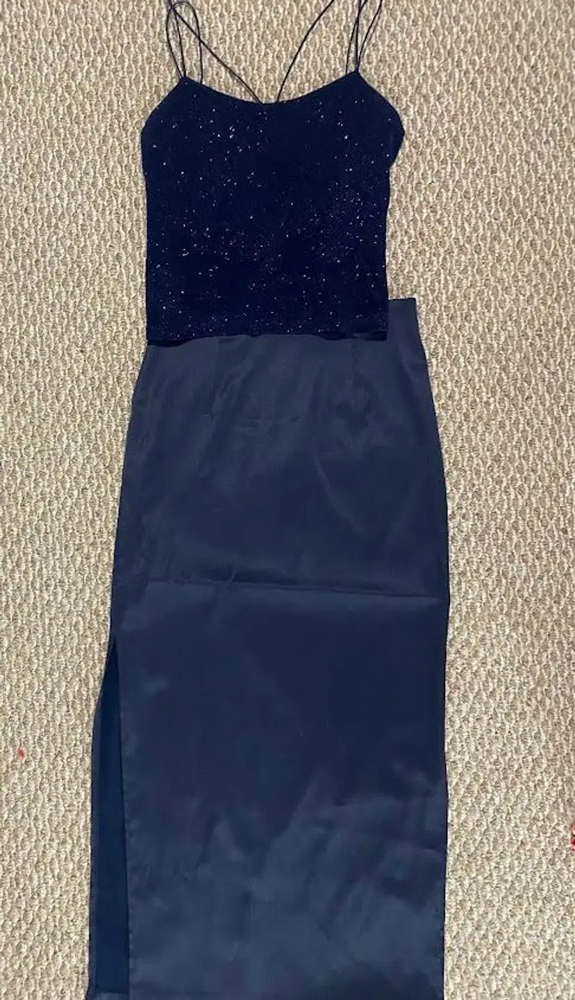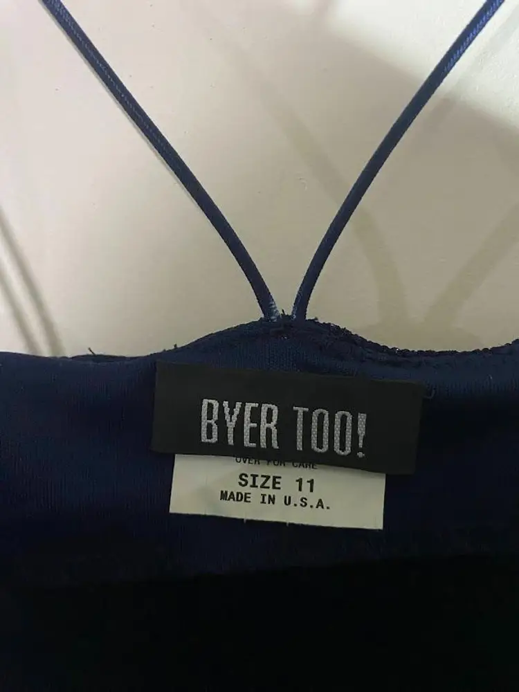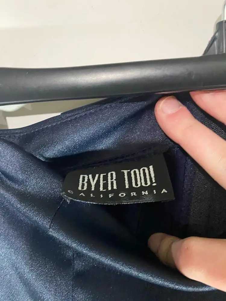 Byer Too y2k 2-piece camisole and skirt set. Navy shimmer top and satin-like ankle length skirt. Size 11. Fits like a 8 imo. Great condition. Tank pit to pit: 14.5". Total length from pit to bottom hem: 12.5". Skirt waist flat: 14". Total length: 39".