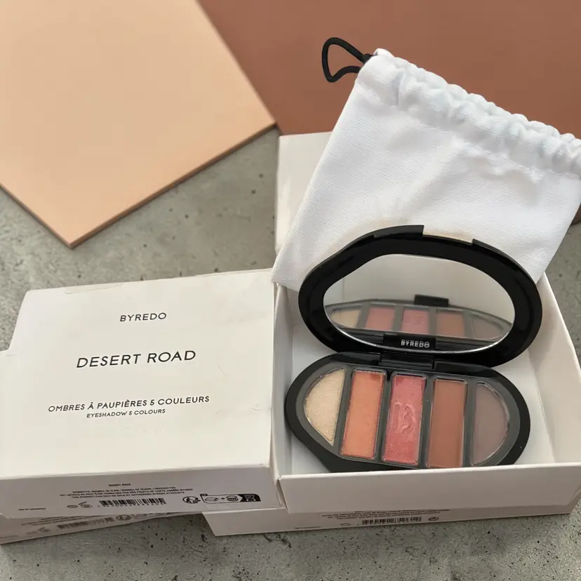 Explore vibrant desert hues with Byredo's 5-color eyeshadow palette. Comes with a chic pouch for easy travel.