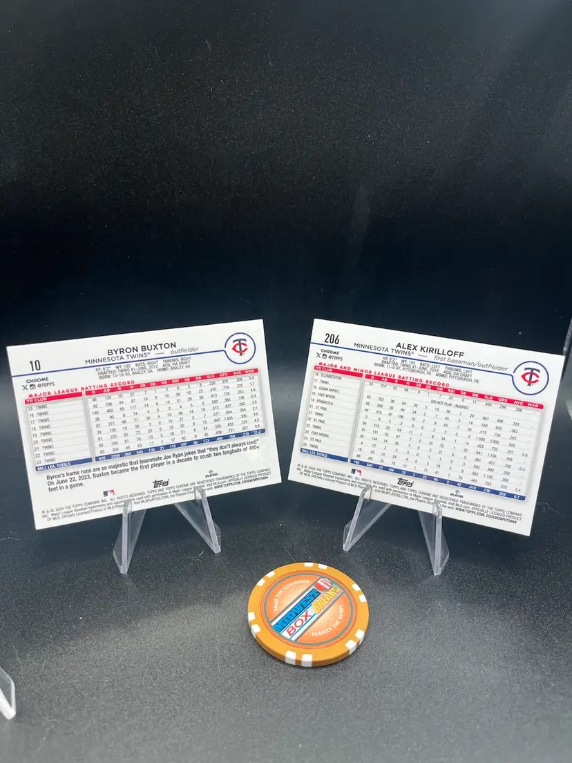 2024 Topps Chrome Minnesota Twins lot. Pink refractors of Byron Buxton and Alex Kirilloff.