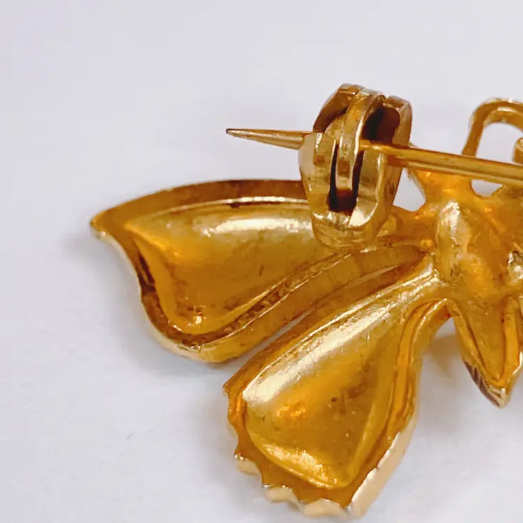 Style/Era: Mid-century figural brooch with ornate scrollwork and butterfly motif; likely 1955–1960