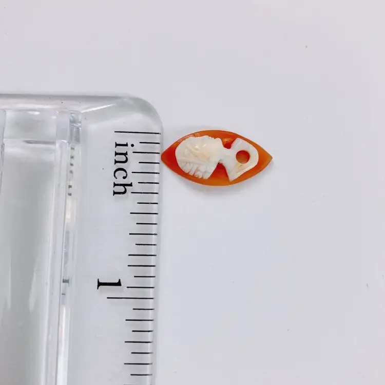 Materials: Hand-carved natural shell cameo in natural orange-pink and white shell layers