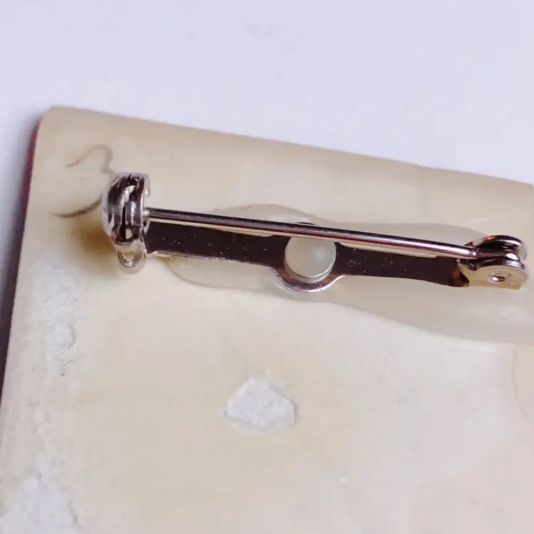 Materials: Resin, embedded collage paper, mixed media acrylic or enamel over molded plastic; standard rolling pin clasp