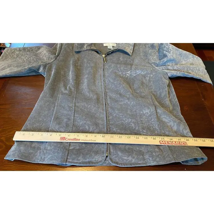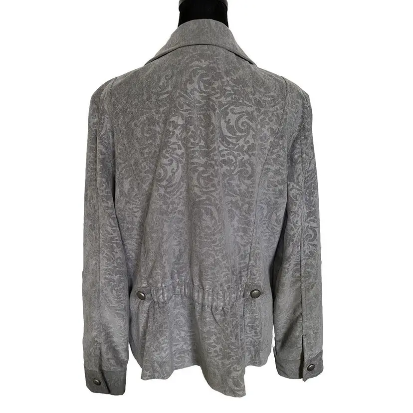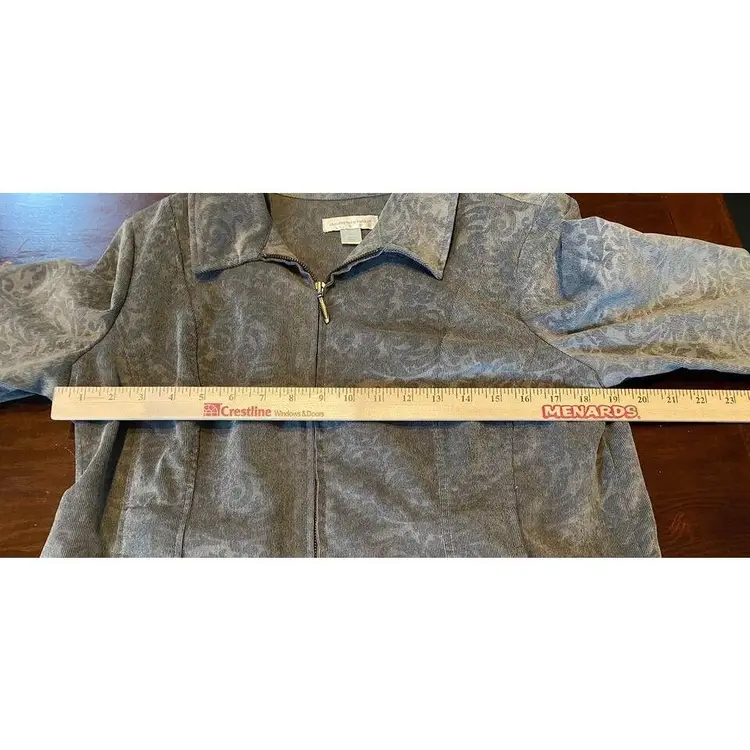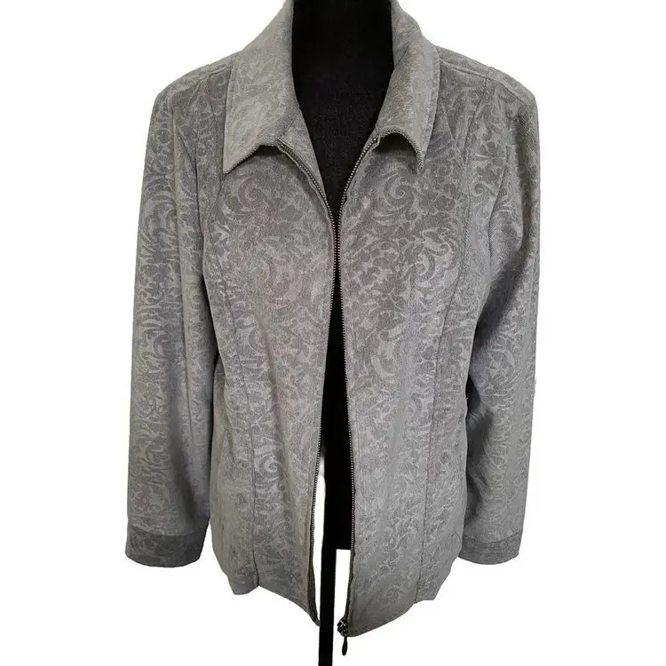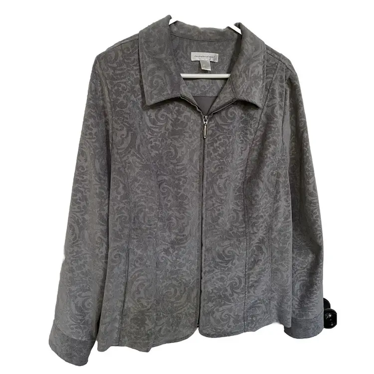 This gray floral-patterned jacket from CJ Banks is the perfect addition to your wardrobe. With full sleeves, this jacket is ideal for any occasion, whether it be workwear, travel, formal events or cocktail parties. The zip front and pockets add to the practicality of this jacket.