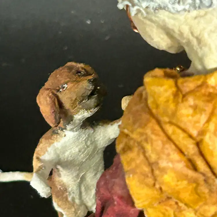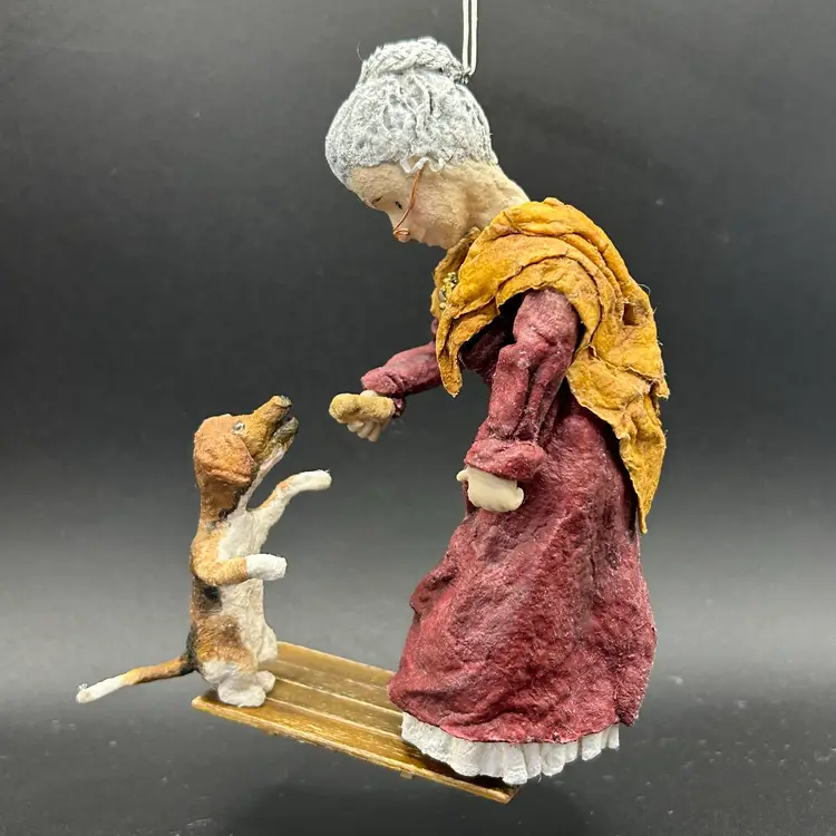 Spun Cotton Approx 4.5x6x2.5 Old Mother Hubbard Went to the cupboard, To fetch her poor dog a bone. When she got there Her cupboard was bare, And so the poor dog had none. **plot twist! She found a bone after all! Happy ending!