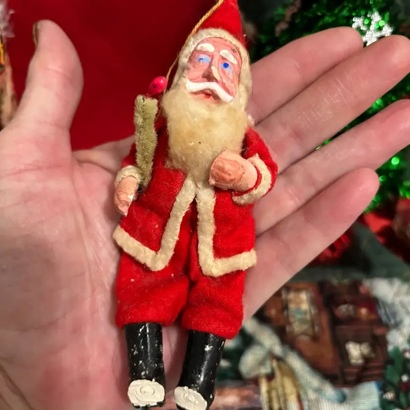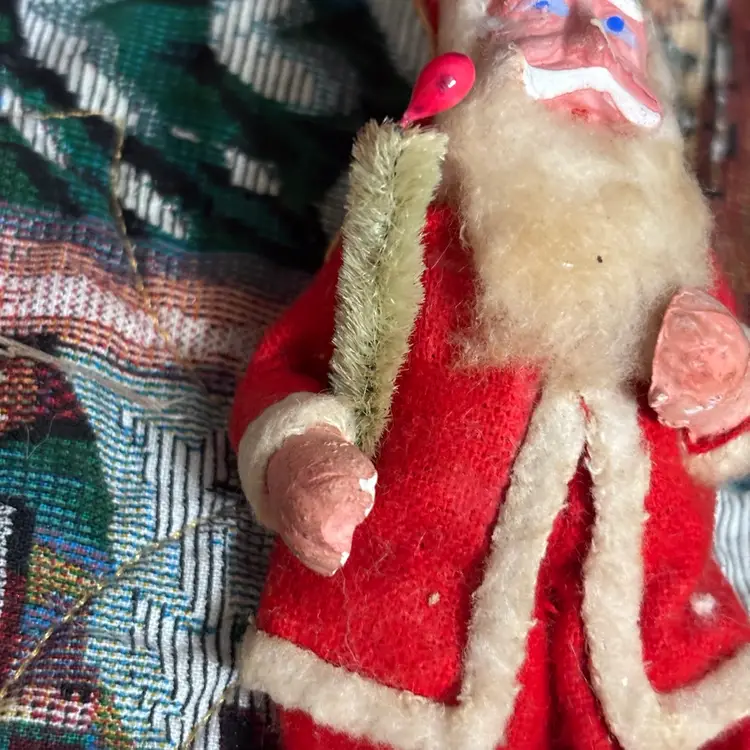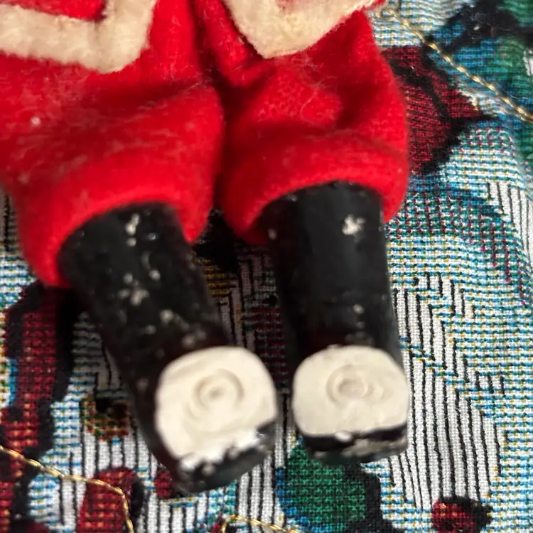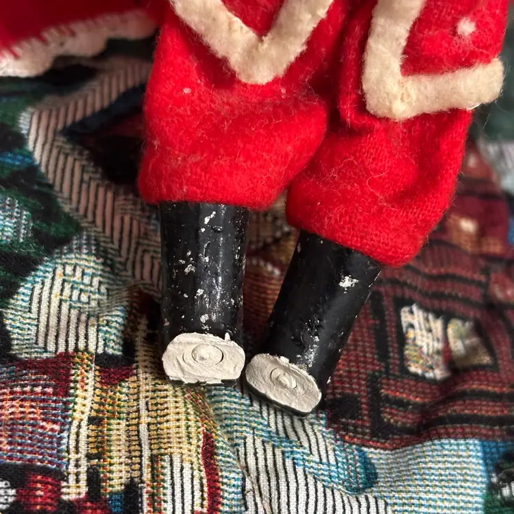 Research stating either German or Japan. Chalkware and felt. Some paint loss and ends of boots may have been broken off but can be touched up with paint. Very nice condition. EST era from research is 1930-40’s.