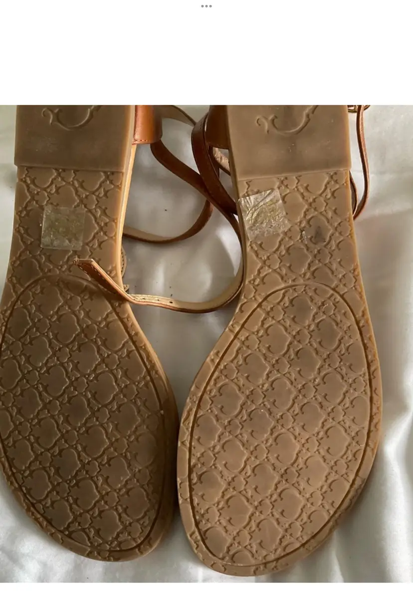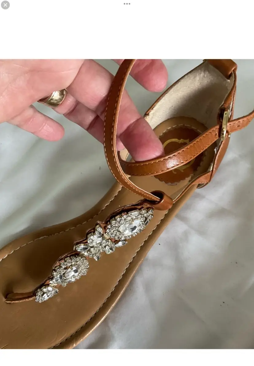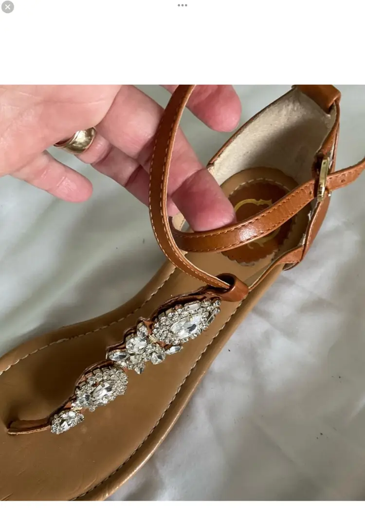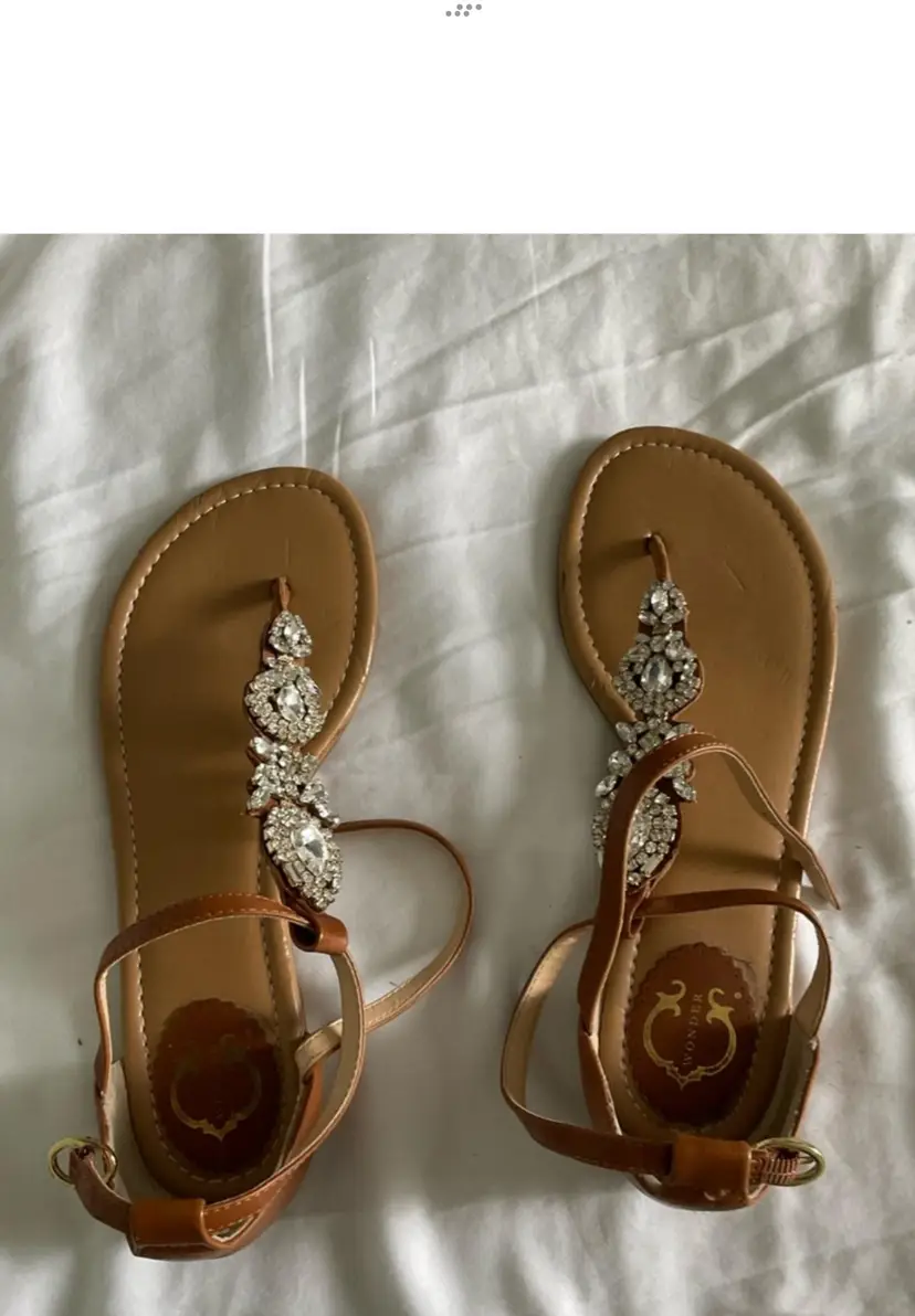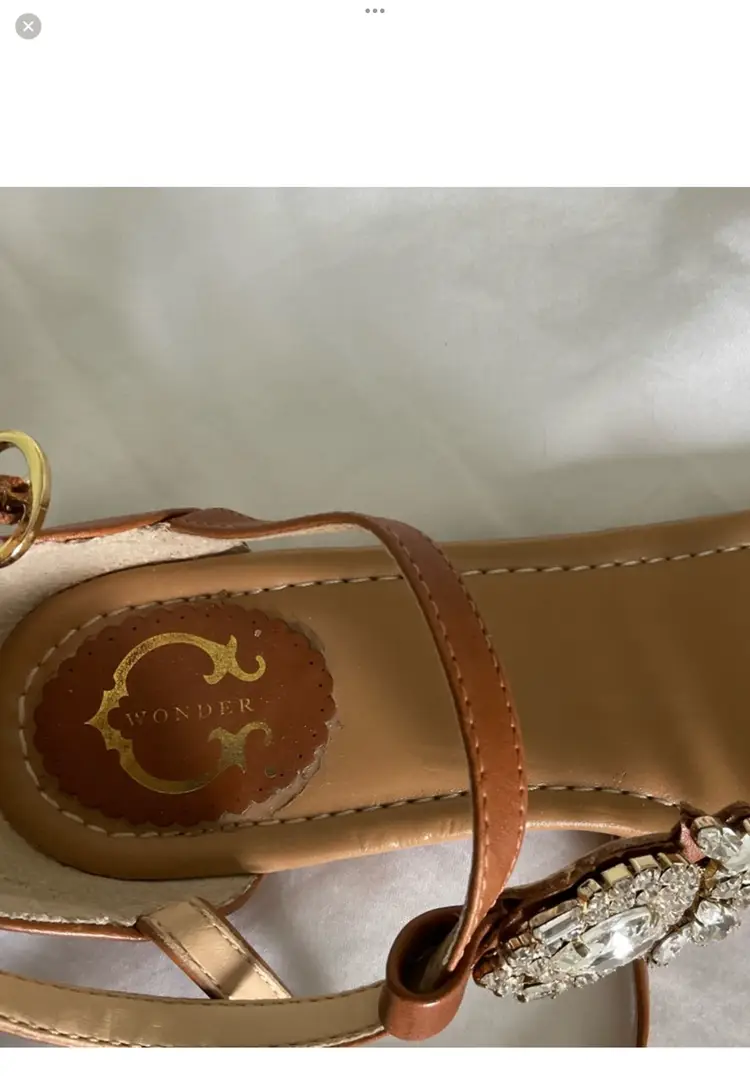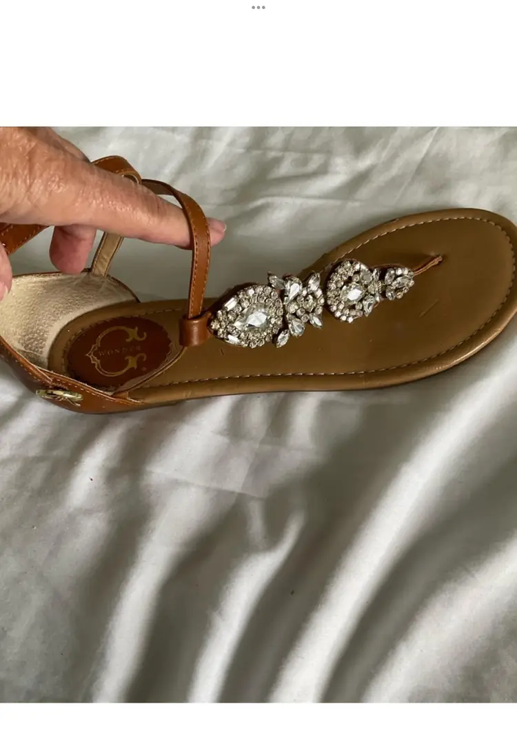 C. Wonder brown leather sandals with ankle strap. They are flat and has crystal like stones on the top for design. These look like they have never been worn. No box.