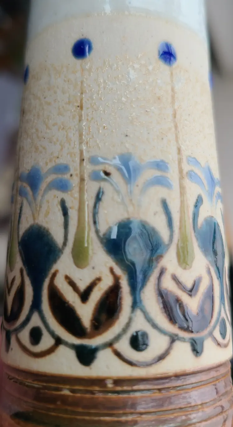Excellent condition. No chips or cracks. Approximately 6" tall. This glaze reminds me of Tonala work. Really neat raised glaze. Check out the close-up pic.