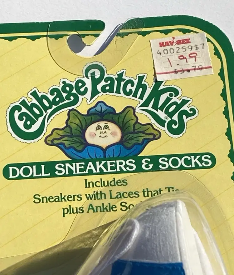 Cabbage Patch Kids Sneakers And Sock Set. 1984 For All cabbage Patch Dolls 16” New In Package.Package Is not Perfect. overall Good Condition. Plastic Is Coming lose From Cardboard On Bottom.