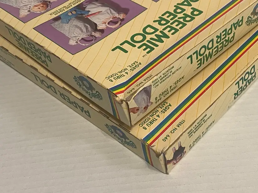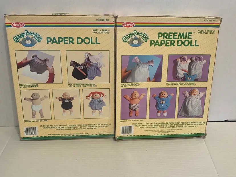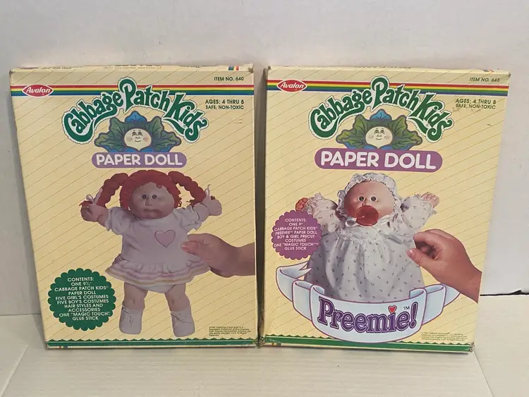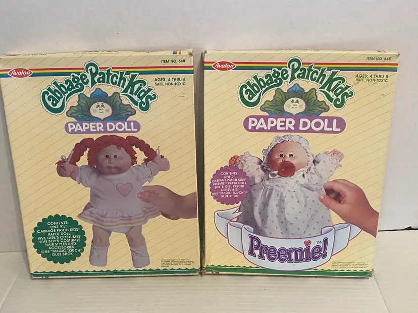Cabbage Patch Kid Paper Doll Set. Lot Of 2. Preemie 1984 & Cabbage Kid 1993. New Unopened Boxes. Boxes Are Not Perfect. Please See Pictures.Please Look Over Pictures Carefully To See Overall Condition Of Boxes.