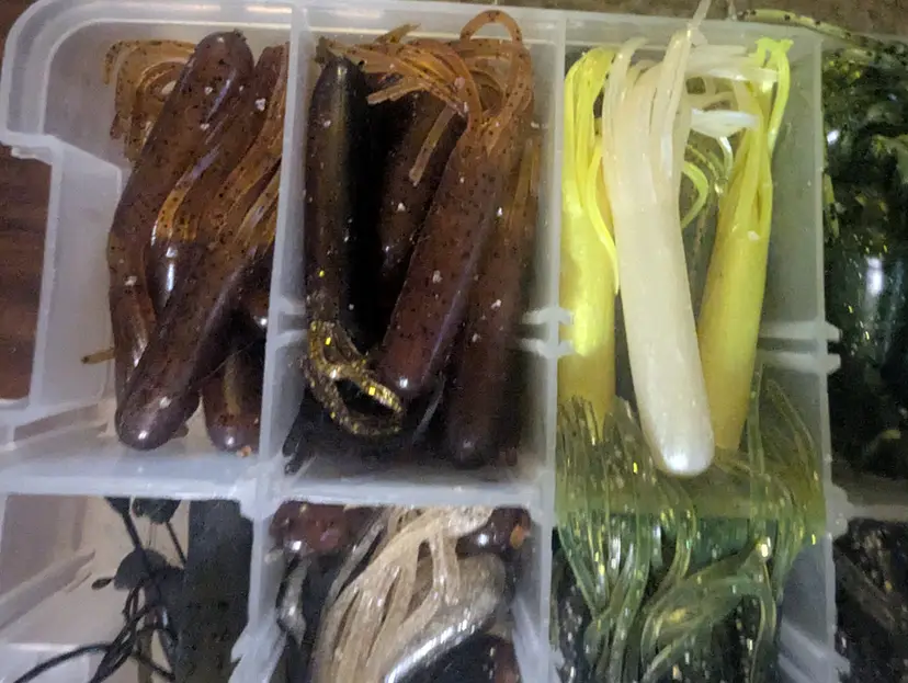This is a fantastic Cabela's 100+ Tube Baits Bass Fishing Lures Soft Plastic Dipped Tubes 3.5" in Plano Tackle box 12 compartments. There are also some hooks included. Please see all pictures for condition and details.