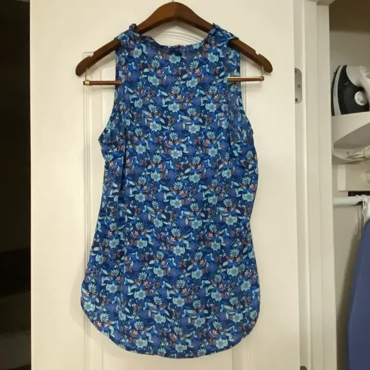 Cabi Womens Tank Top S Small Bust 38” Blue & Green Floral Print Summer Flowers Great condition with no stains or damages Pit to pit across is 19” for bust measurement of 38” Length 25” in front and 29” in back Polyester #floral #summer