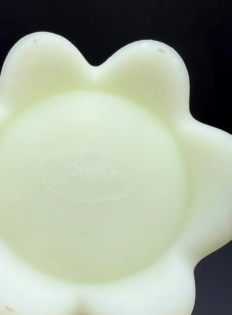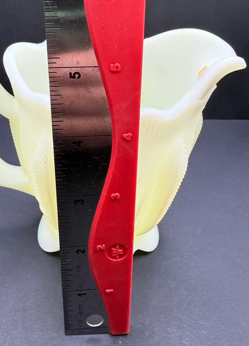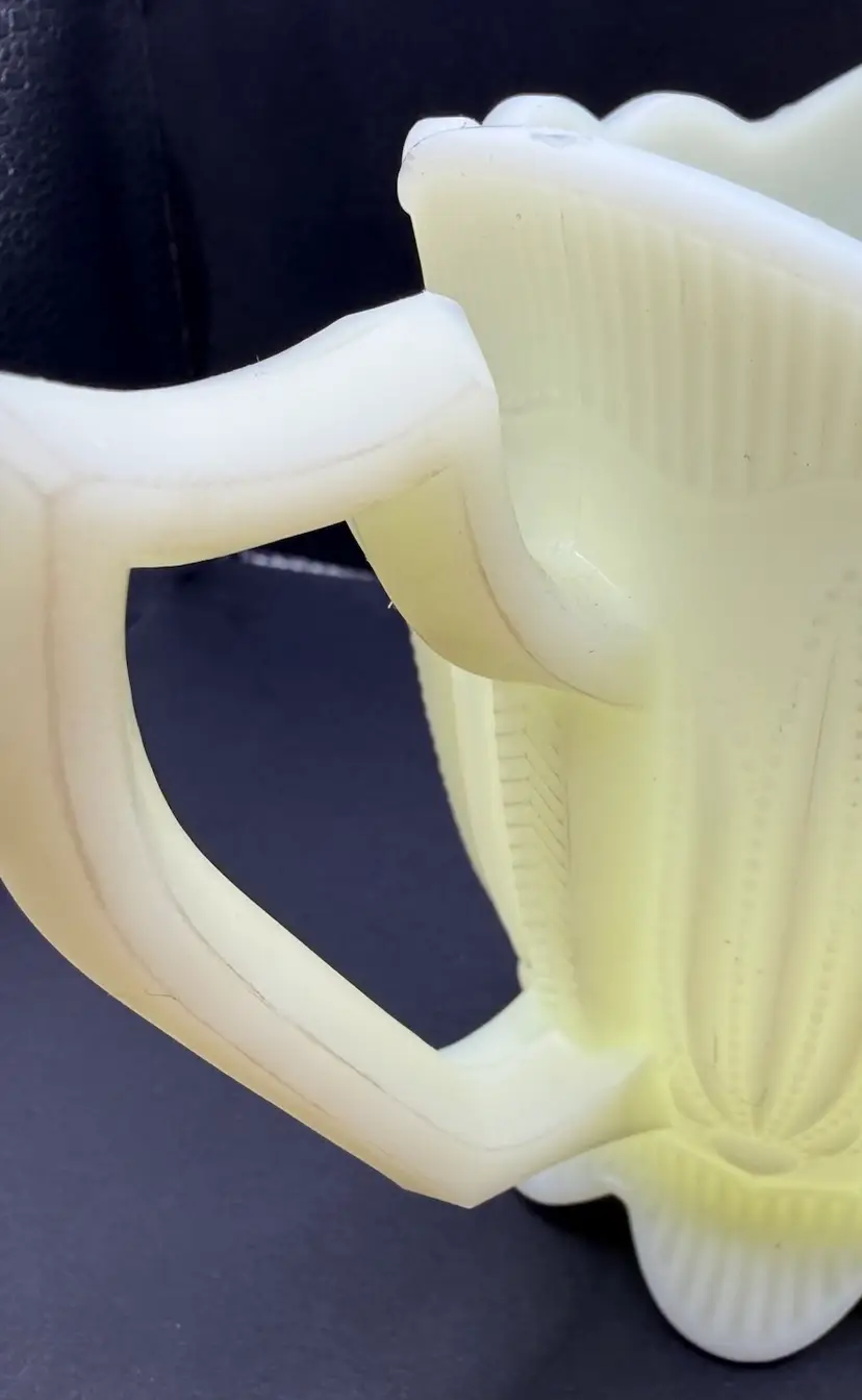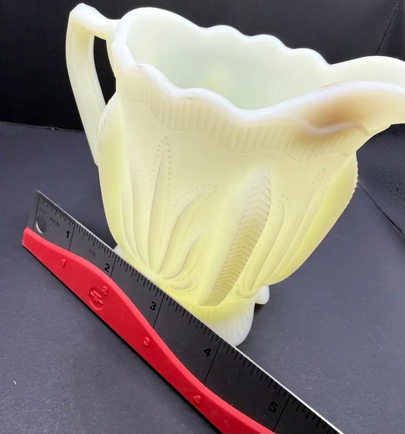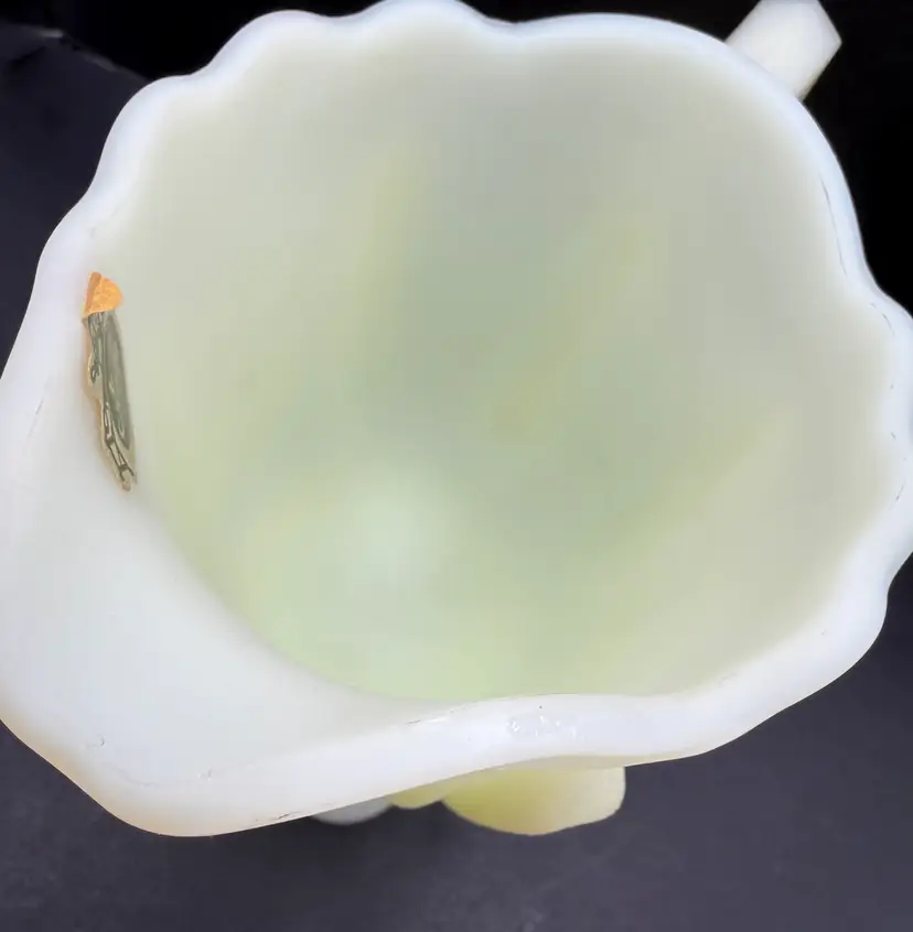 Cactus creamer and it glows! This is such a fun pattern. Produced between 1970-85 it features the original sticker stamp in the bottom. No chips, cracks or glass mold issues