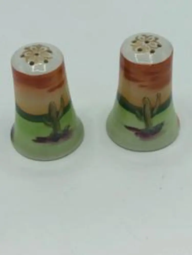 Adorable Cactus Salt & Pepper shakers that have no chips or cracks. The colors are similar to an amazing bright sunset.
