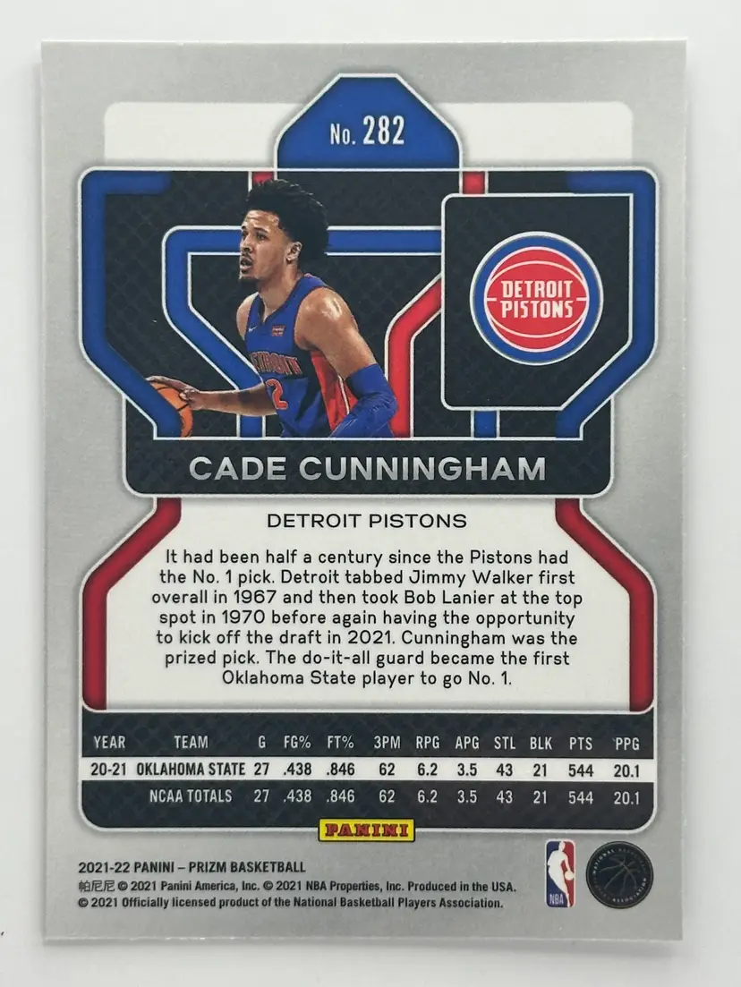 Snag this Cade Cunningham rookie card from Panini Prizm, showcasing the Pistons' rising star in action.