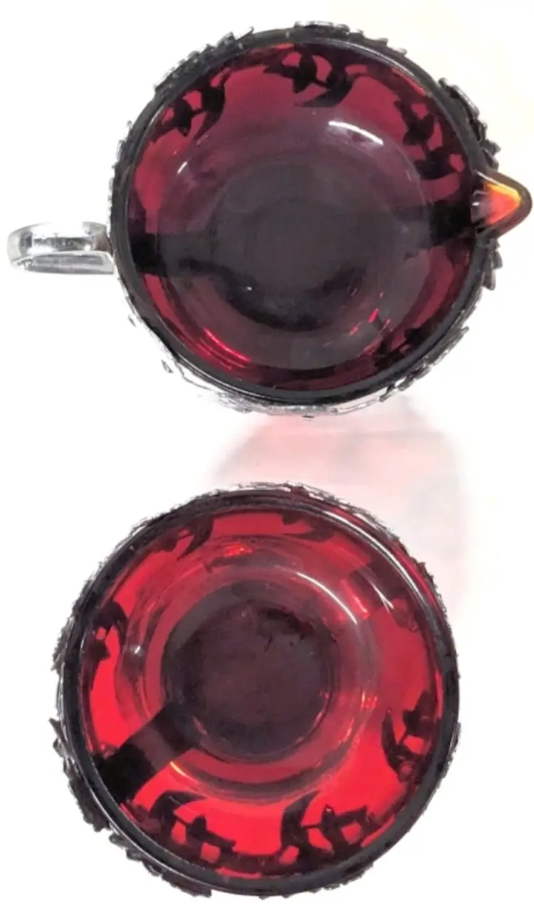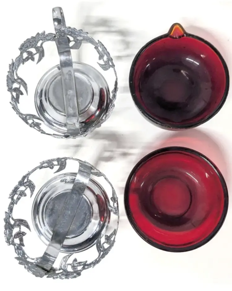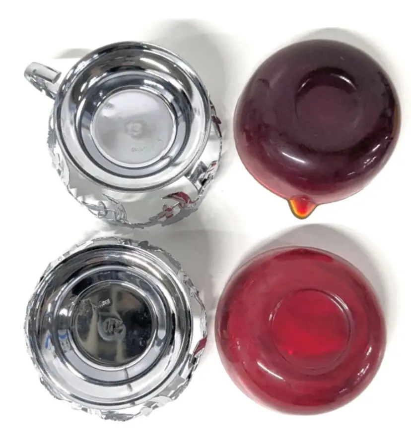 No cracks. A breached bubble inclusion on the sugar dish, tiny fleabites and chips along creamer rim