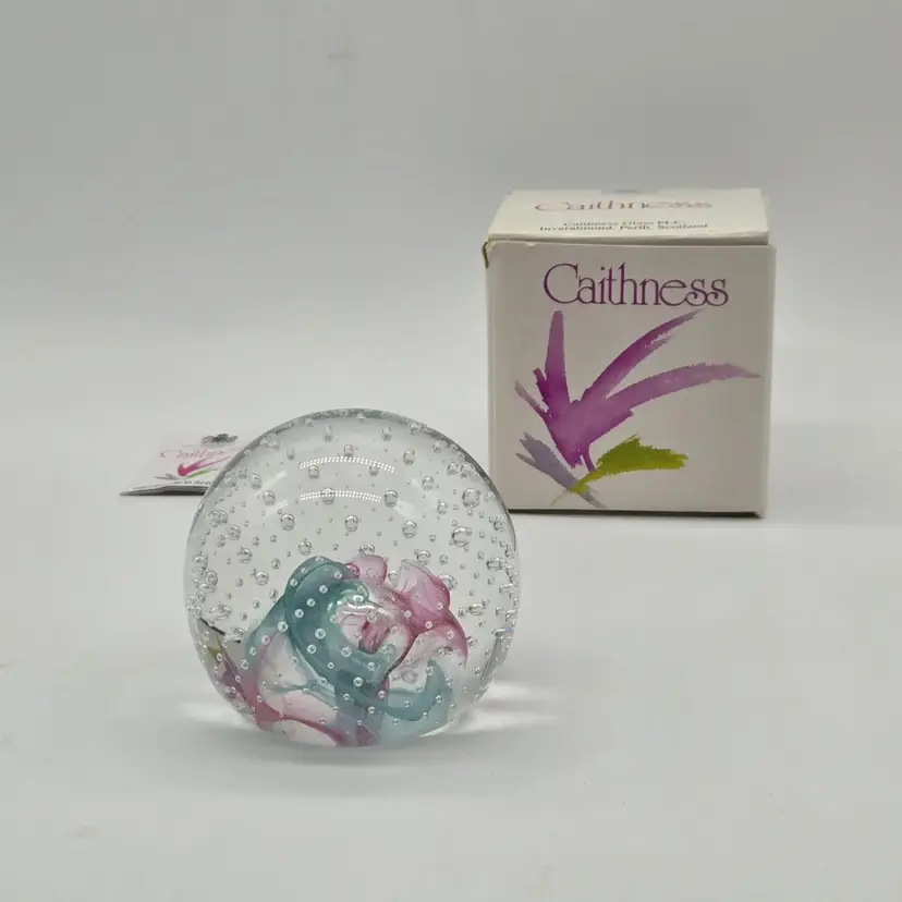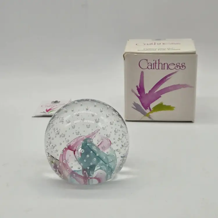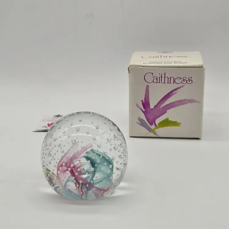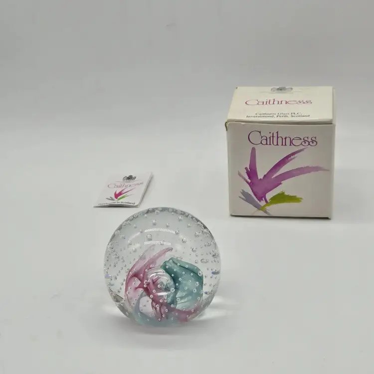 Caithness Glass Reflections 1991 Collectors Club paperweight mini 2.25". With original box. Good vintage condition. Stored in display case. No chips,cracks,bruises or scratches. Please see photos as they are part of the description. Item will be well wrapped before shipping.