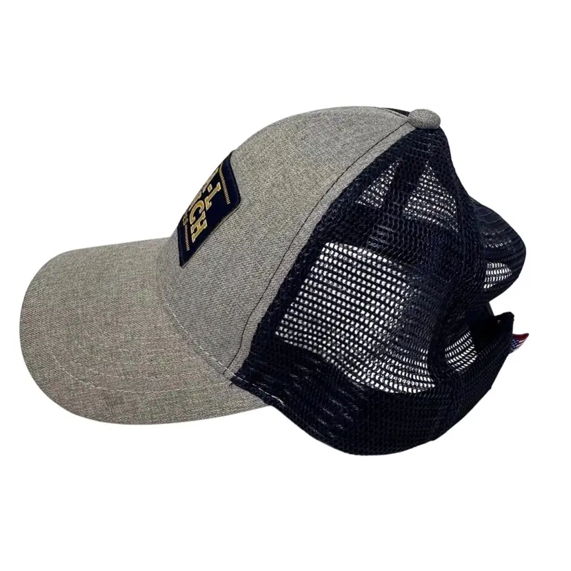 The Cal Ranch Stores Patch Logo Farming Goods Heather Gray Trucker Style Snapback is a stylish and versatile accessory suitable for both men and women. With a solid gray color and a mesh back design, this hat provides breathability while keeping you cool. The adjustable feature ensures a comfortable fit for various occasions, such as travel, party, casual outings, or workwear. The rodeo, horse, outdoor, and farming themes make it a perfect addition to your wardrobe, especially for those who appreciate the agricultural lifestyle. Made from a blend of polyester and cotton, this hat is durable and suitable for all seasons.
