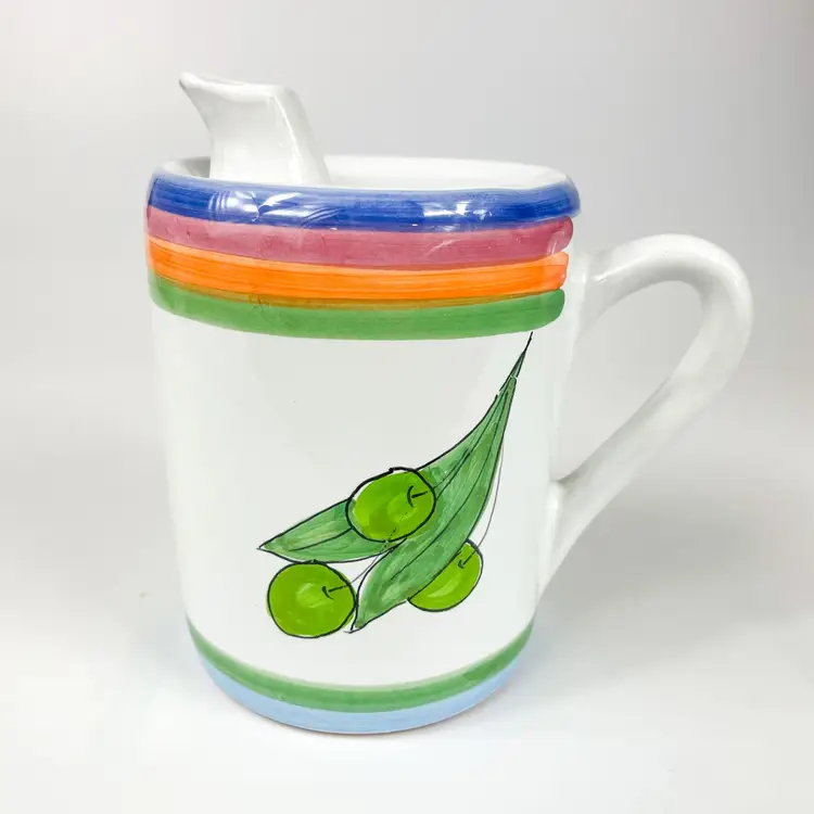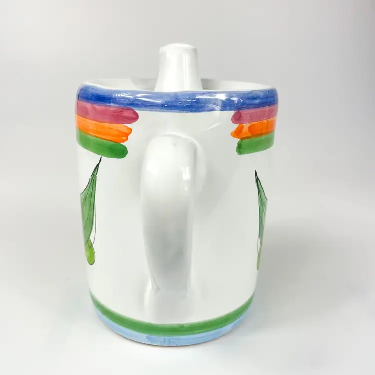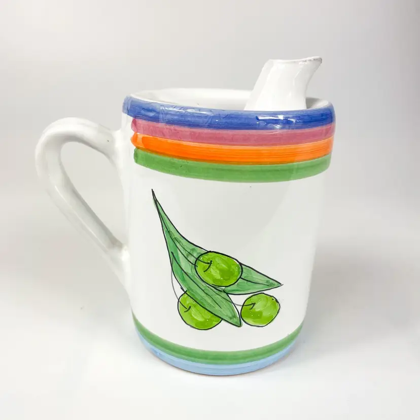 Lovely hand-painted jug with a colorful olive design, ideal for serving milk or cream. Adds a touch of Italian charm to your kitchen.