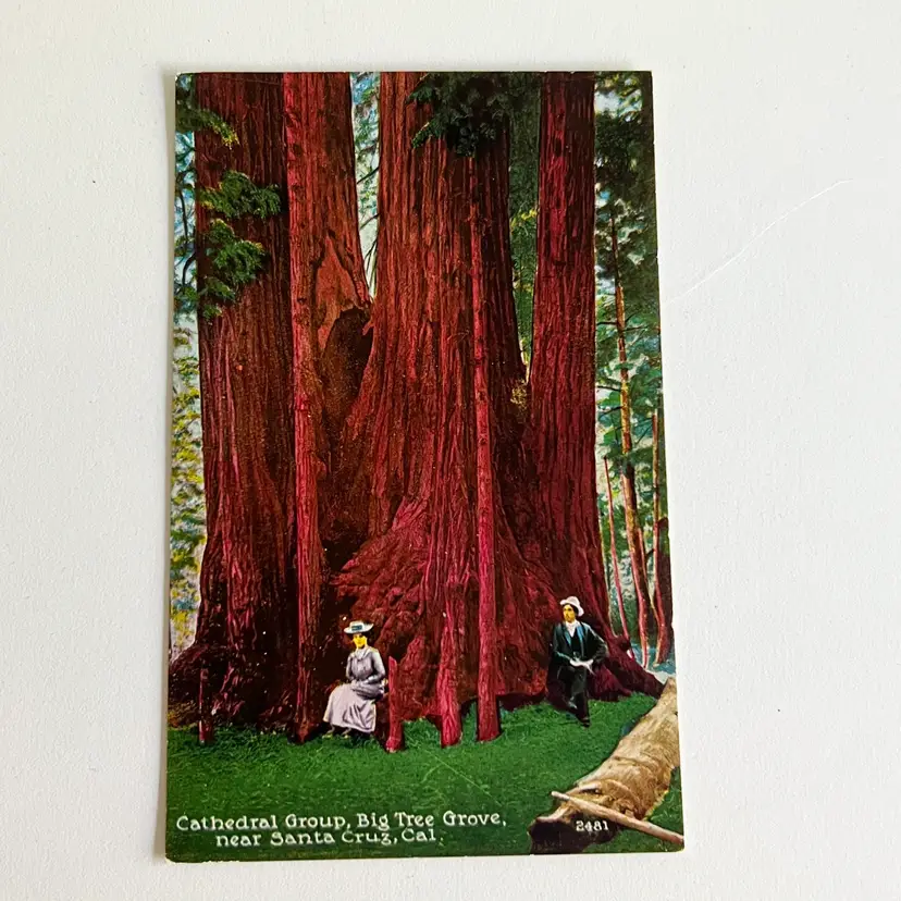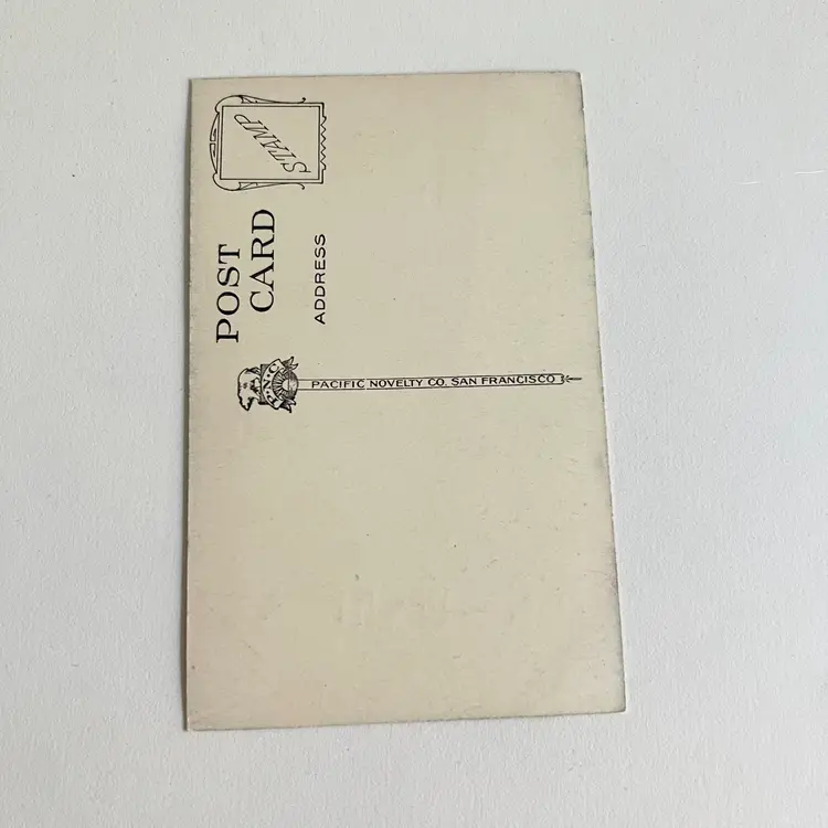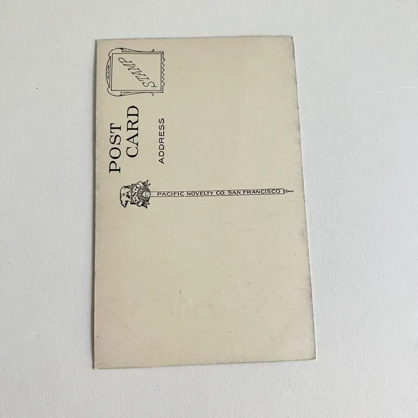 I’m not quite sure what these lovers are doing… Is he sneaking up on her? But the colour of the postcard is really rich and it would be great framed because it’s an interesting picture. The postcard is unsigned/unused so you could use it to send a message to someone. 3 1/2” x 5 1/2”.