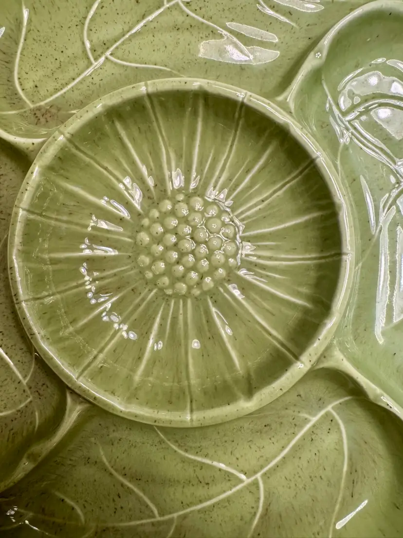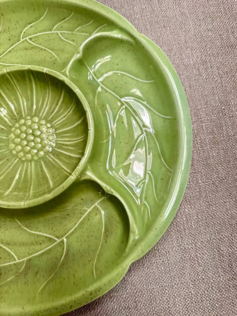 California Pottery Lime Green Sunflower & Leaf Serving Platter