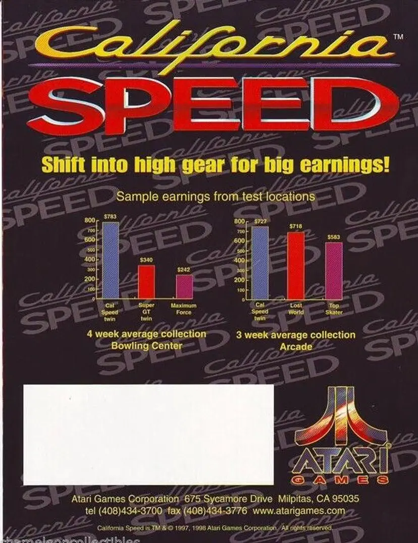 Modified Item: No Country/Region of Manufacture: United States Original/Reproduction: Original Year: 1998 Game Title: California Speed Brand: Atari Arcade: Flyer