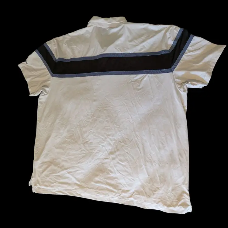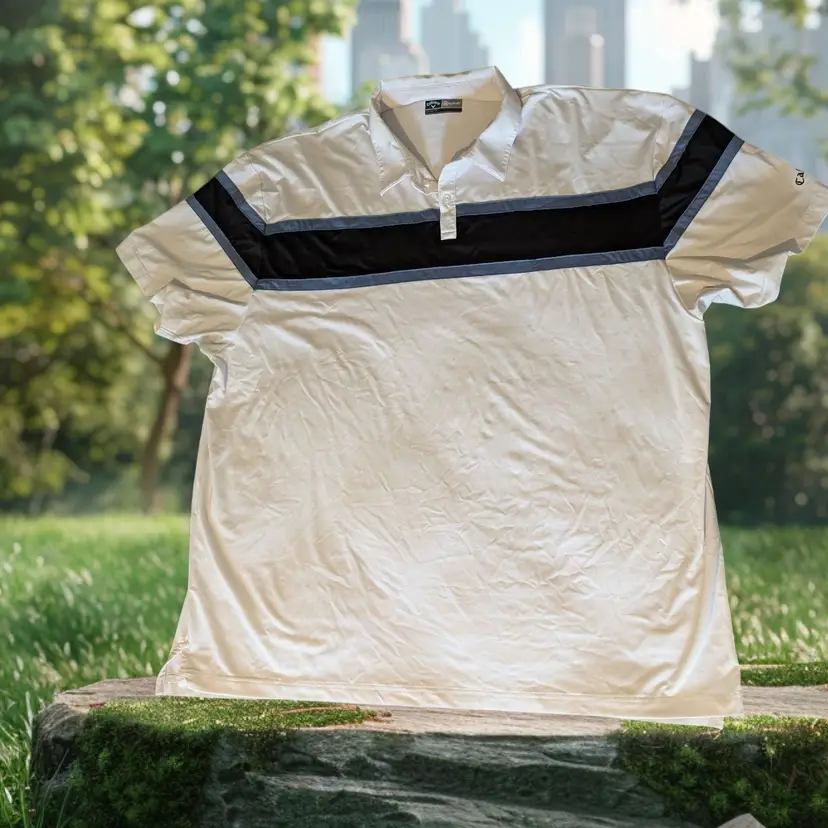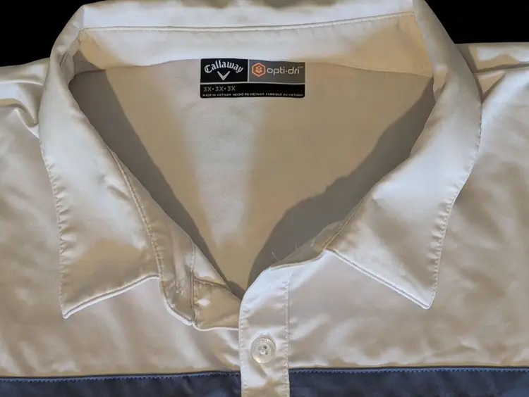 The Callaway Men's Polo Golf Shirt in blue is a stylish and practical option for various occasions. Made from a lightweight and airy polyester blend with Opti-Dri technology, this shirt features a collared neckline, button closure, and short sleeves for a classic golf look. The shirt is designed for comfort and breathability, with stretch fabric and moisture-wicking properties perfect for a day on the golf course or a casual outing during the warmer seasons. The white color and solid pattern make it versatile for pairing with different bottoms for a cohesive and sporty ensemble.