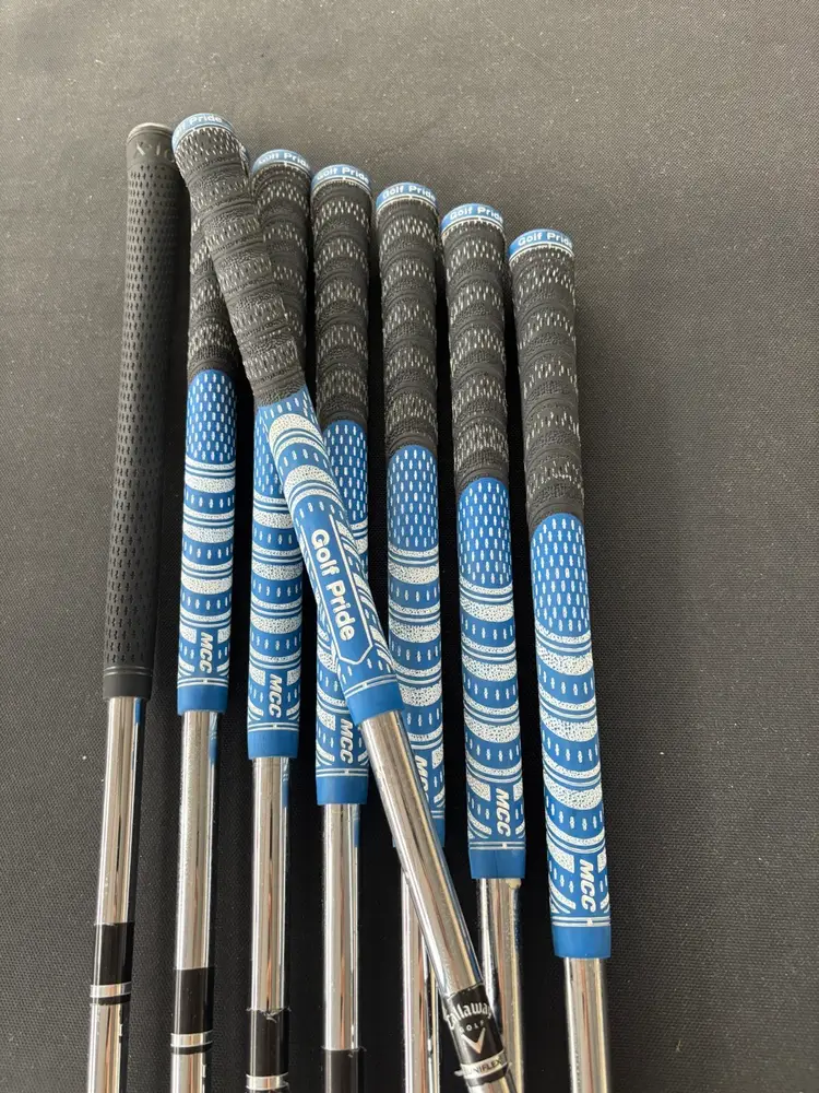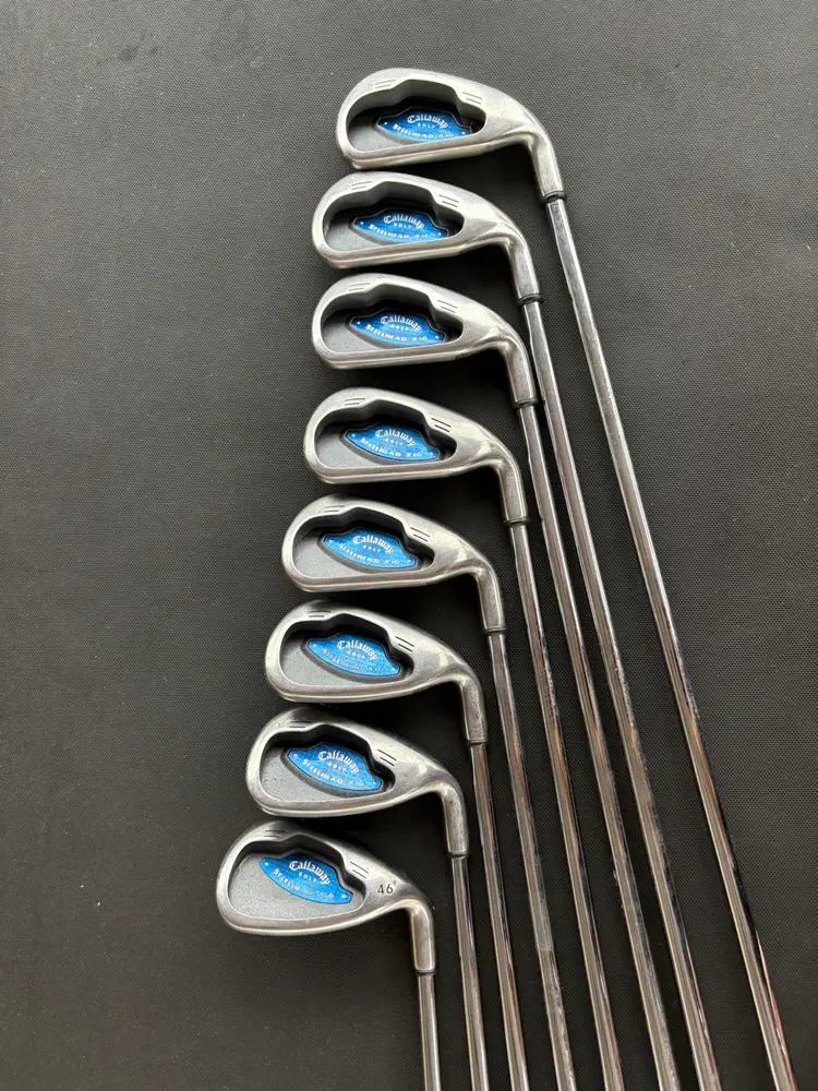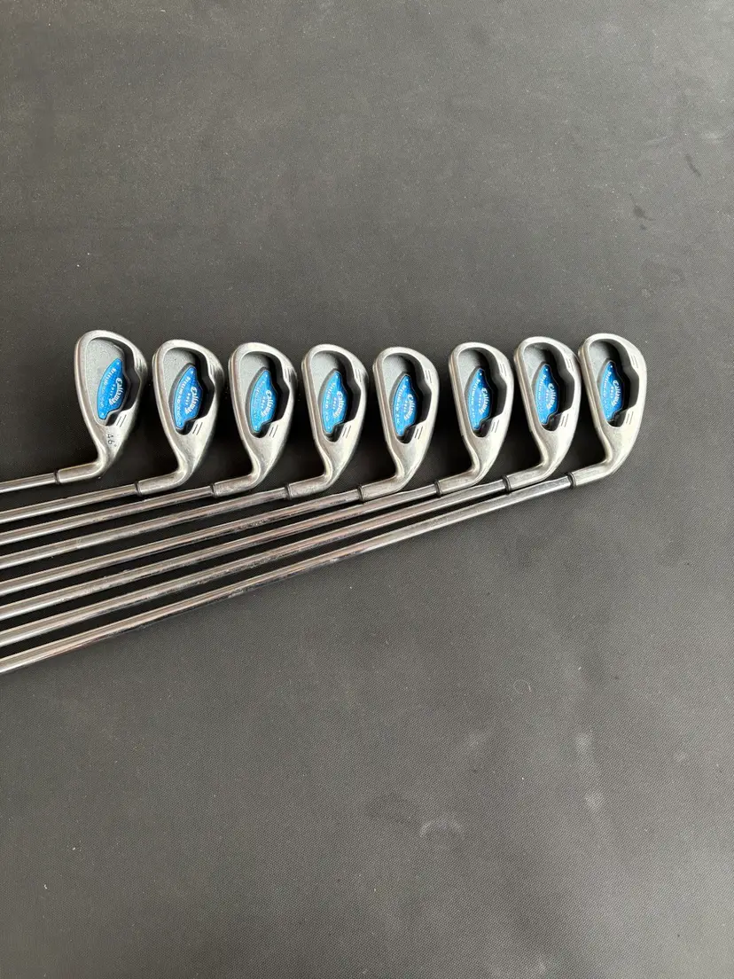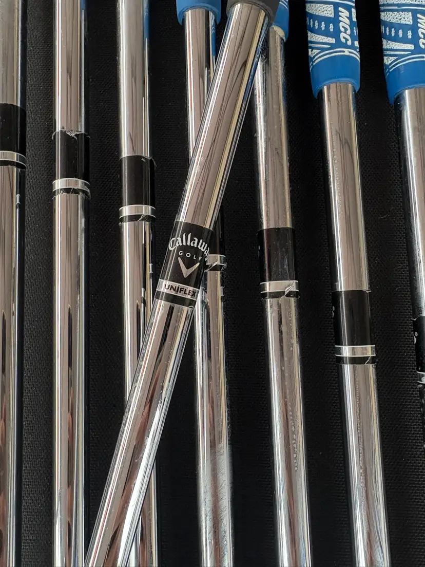 I want to be fully honest and lead with kindness and confidence so you know exactly what you’re getting: • Condition: These irons are in good used condition overall. The faces and soles show typical wear from play — light surface marks, but no cracks, dents, or major dings. The grooves are still strong and clean. • Grips: All clubs besides the 3 iron have brand new Golf Pride MCC grips professionally installed, offering excellent feel and traction. • Shafts: Original Callaway Uniflex steel shafts in great shape — no rust or pitting, just light wear consistent with normal play. • Clubs Included: 3, 4, 5, 6, 7, 8, 9, and Pitching Wedge (46°).