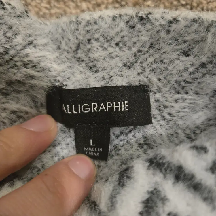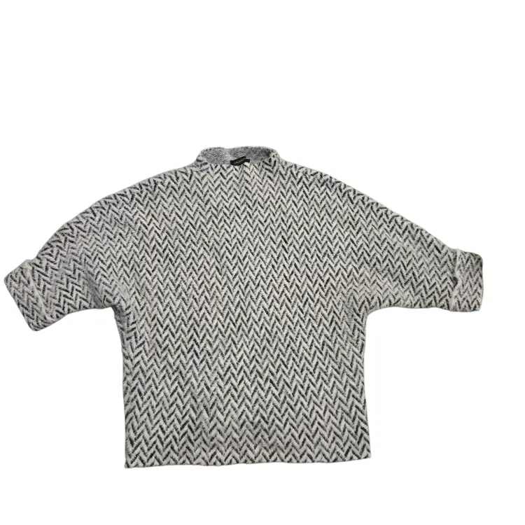 Calligraphie By Anthropologie Soft Mock Neck Sweater White Black Chevron Size L