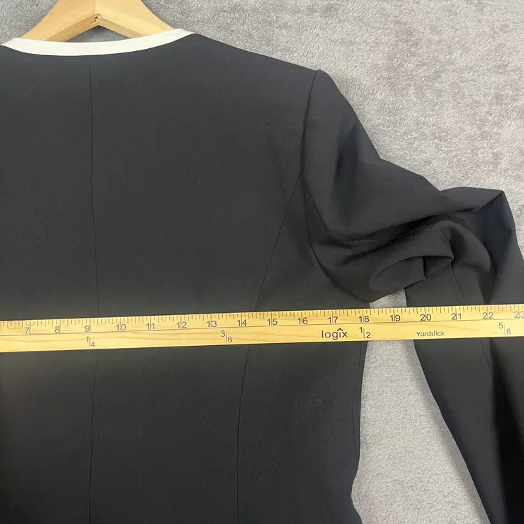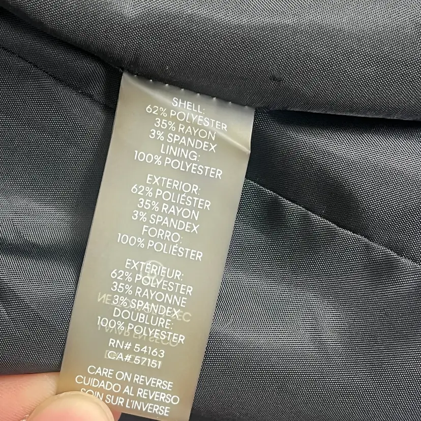 Structured silhouette with clean tailoring Asymmetrical front design with contrast trim Gold-tone zip pockets for a refined finish Fully lined for smooth layering and all-day wear Fabric blend includes stretch for comfort See pictures for measurements