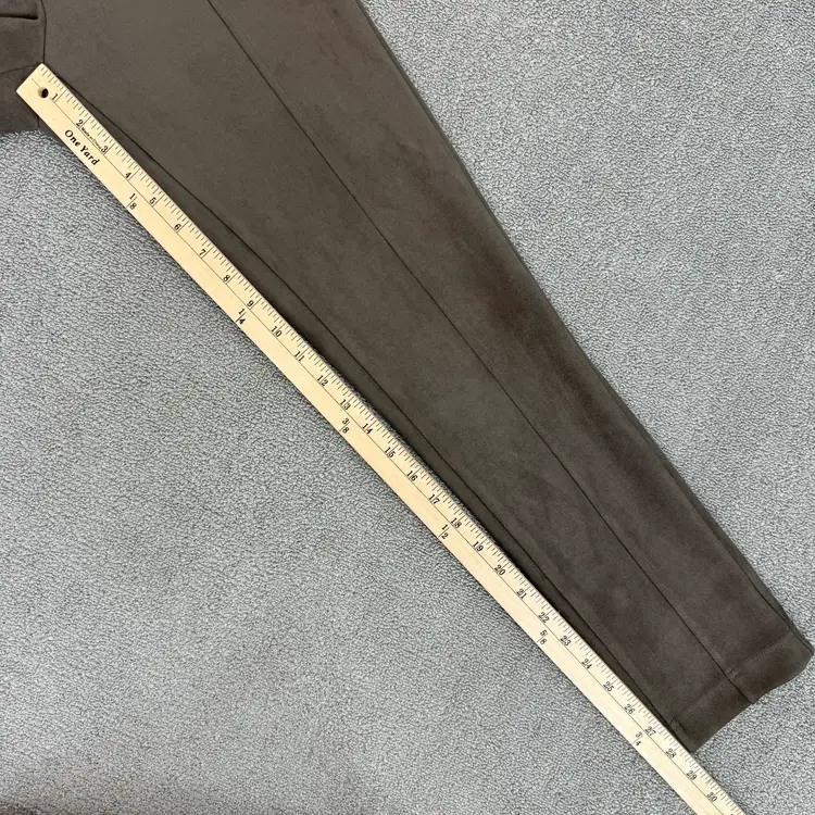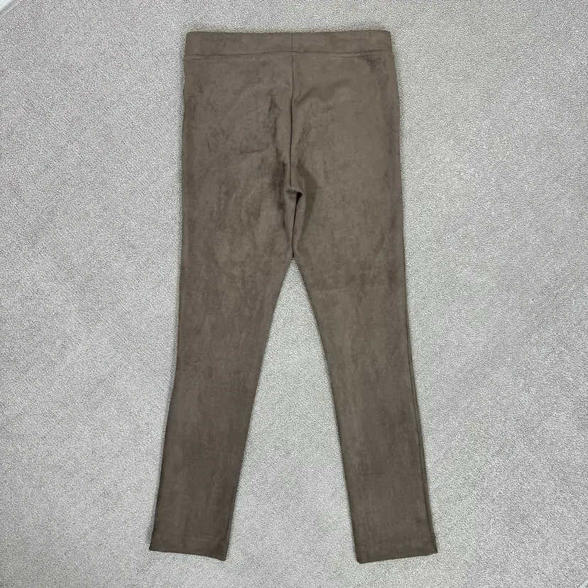 Taupe brown color Faux suede microfiber Stretch Ankle length Mid rise Elastic wait Skinny fit
