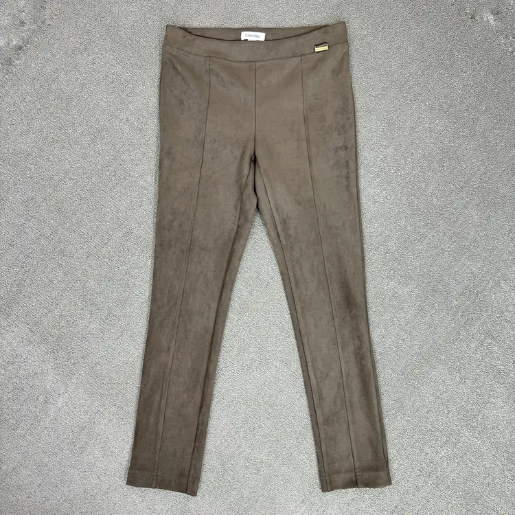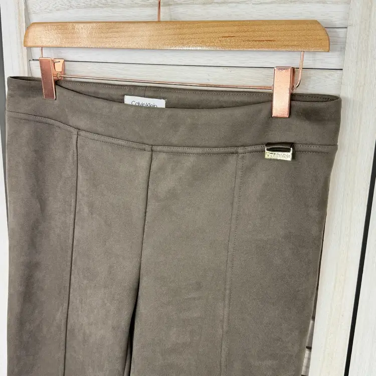 Calvin Klein Faux Suede Skinny Pull On Pants Taupe Tan