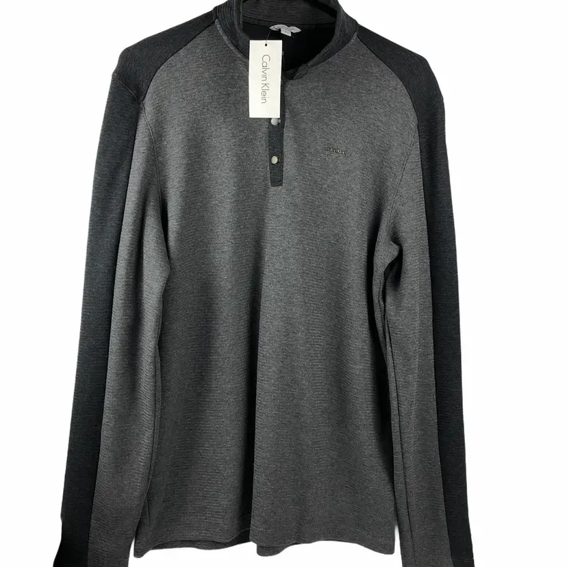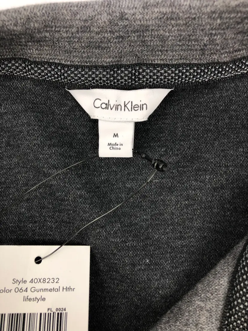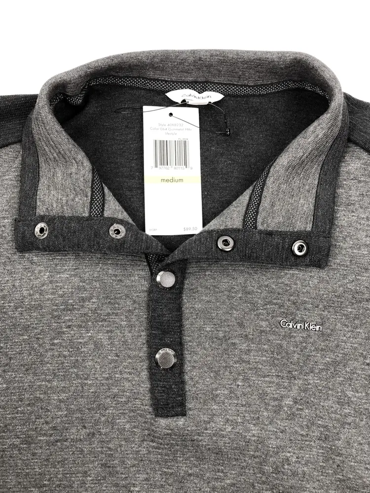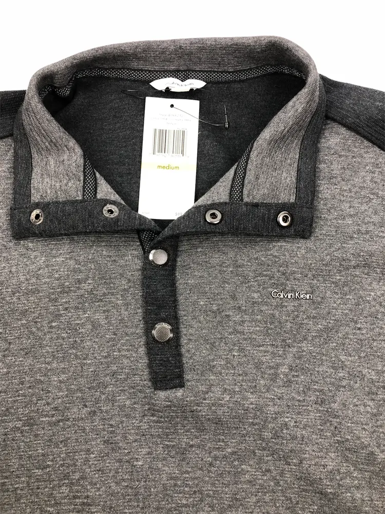 Calvin Klein 1/4 Snap Men's Med Long Sleeve Pullover Sweater Gunmetal Hthr Logo