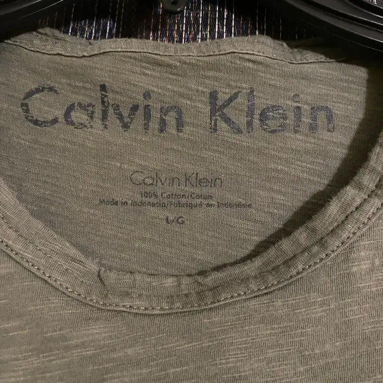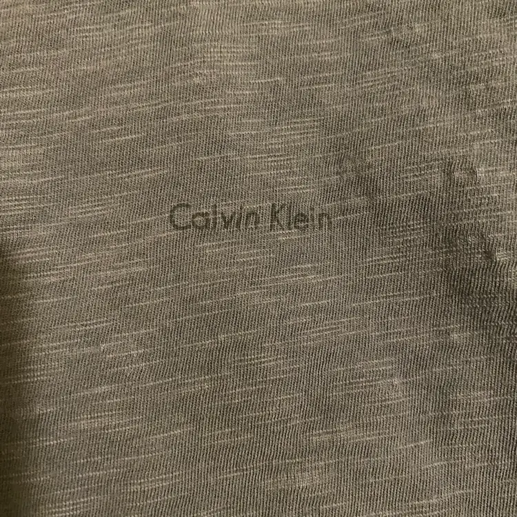 You are purchasing one Men's Size Large Green Short Sleeve T-Shirt by Calvin Klein. This Shirt has an interested almost textured feel to it, very soft and flowy. This T-Shirt is in great condition with no rips, stains, holes or snags.