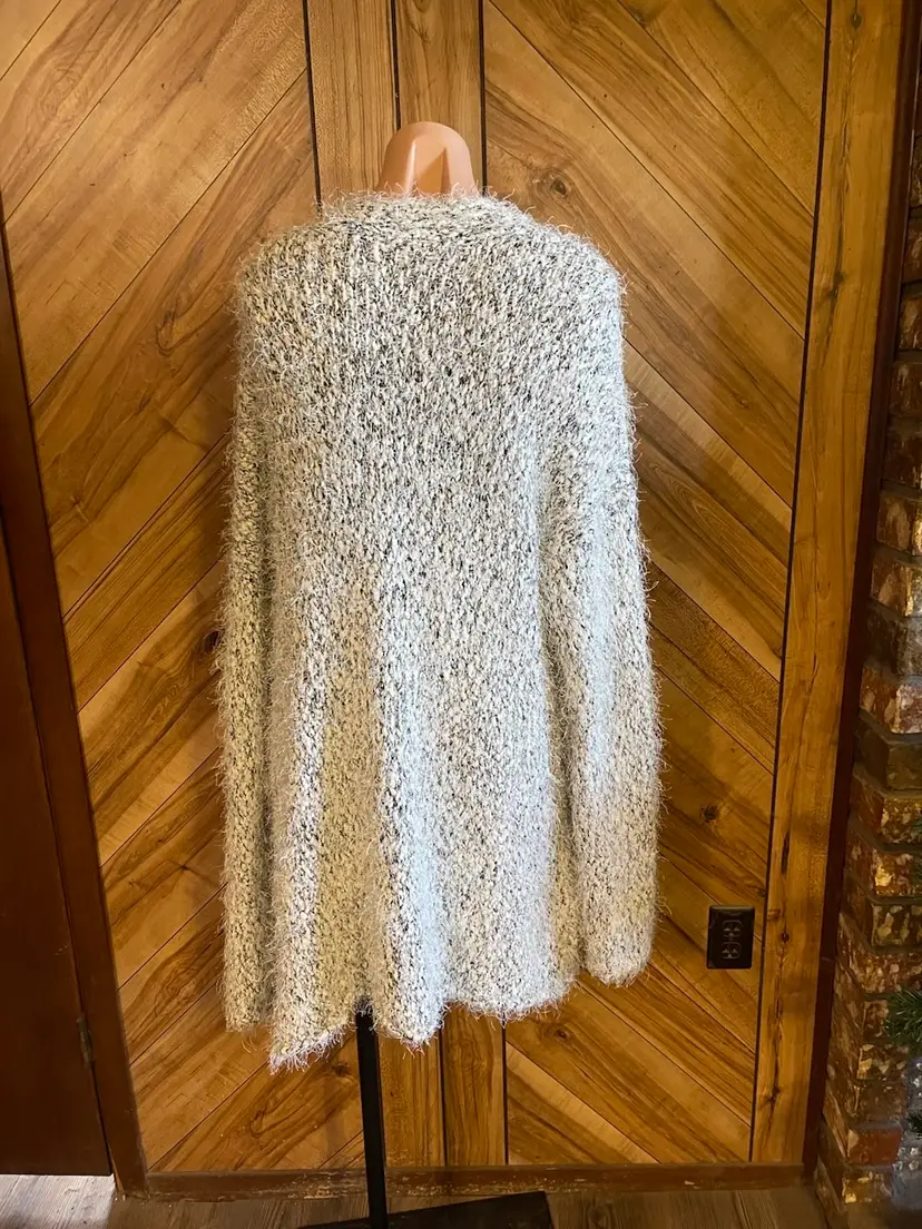 #CalvinKlein #CK #FuzzyCardigan #EyelashKnit #CozyVibes #BohoStyle #LongCardigan #GreySweater #LayeringPiece #WinterFashion #SizeLarge #ResaleFashion #Streetwear #LoungeWear