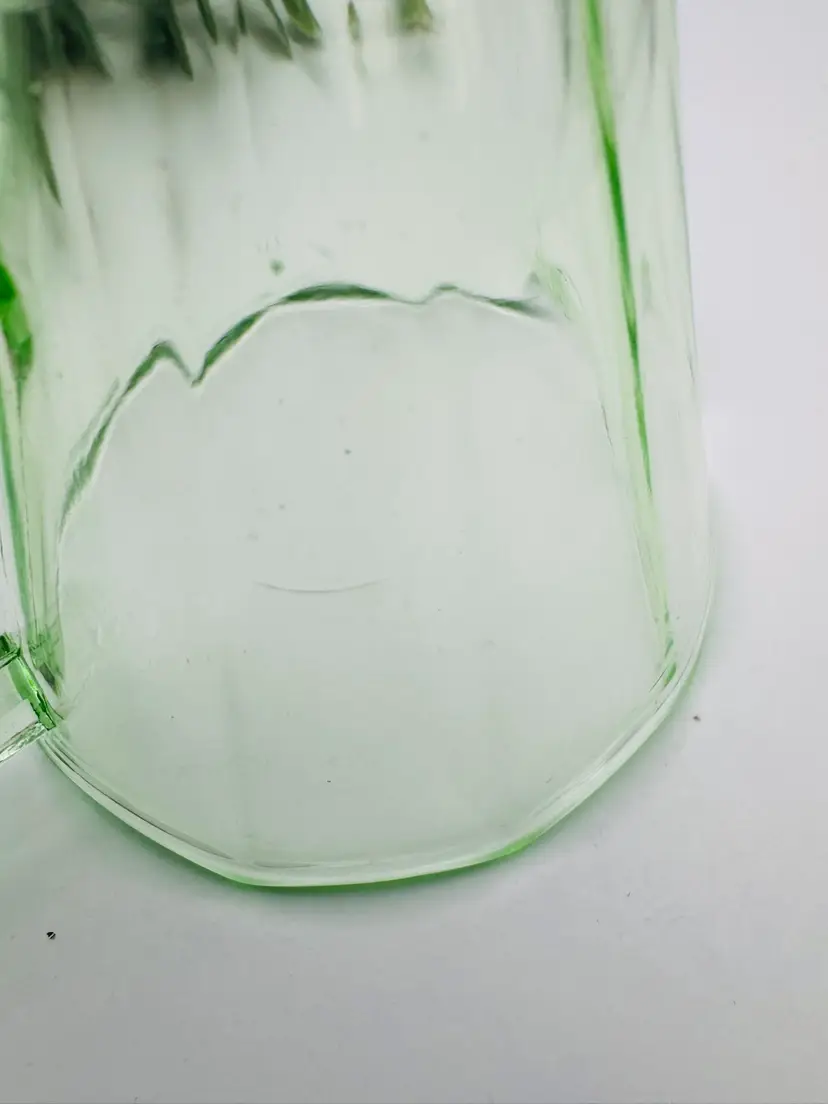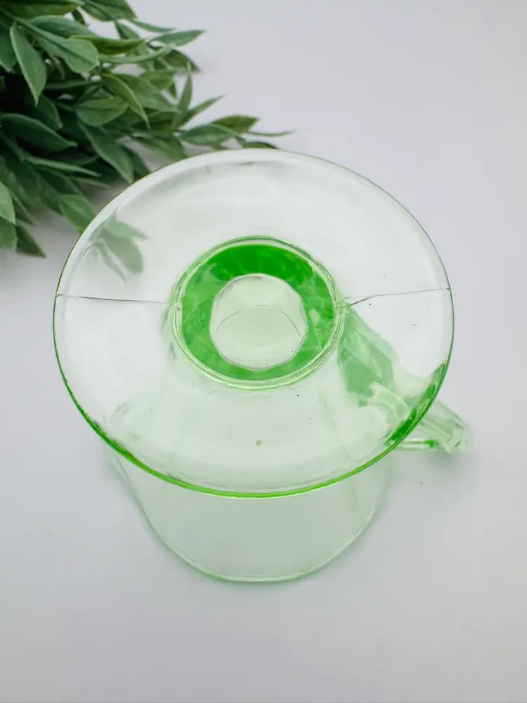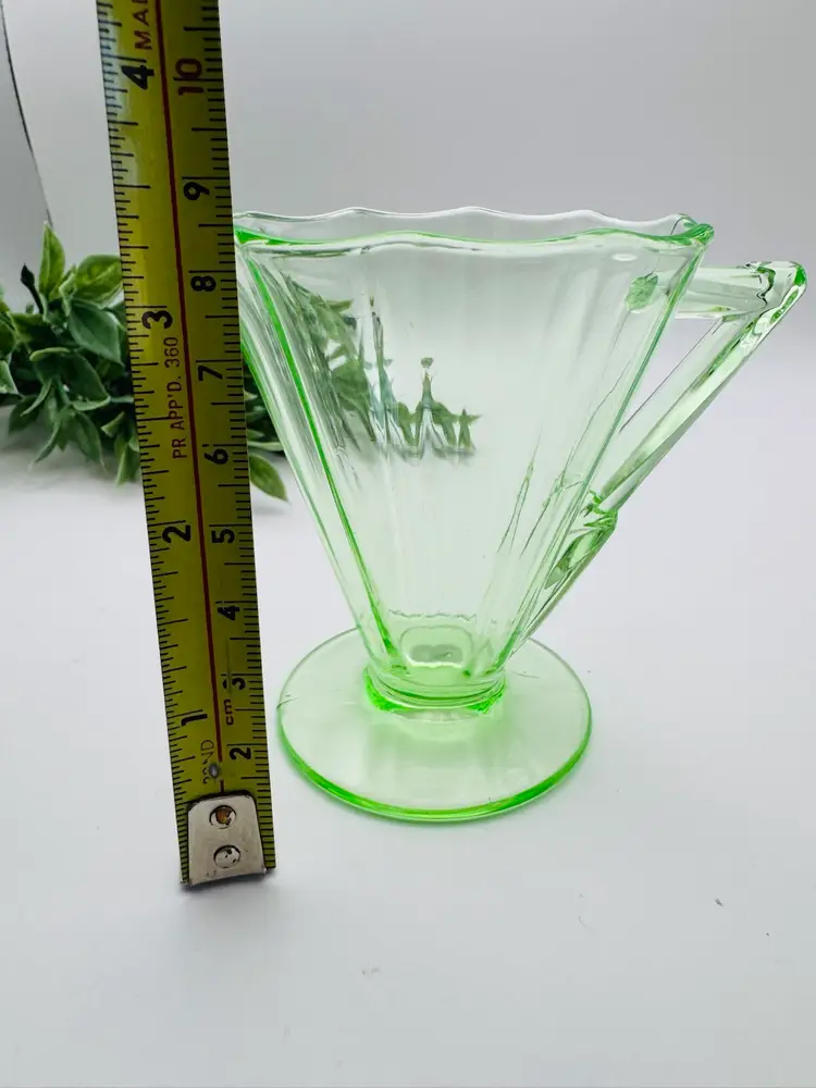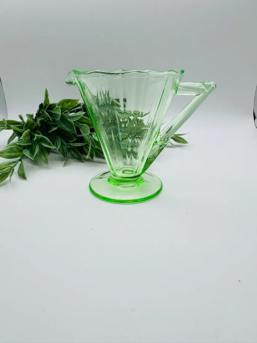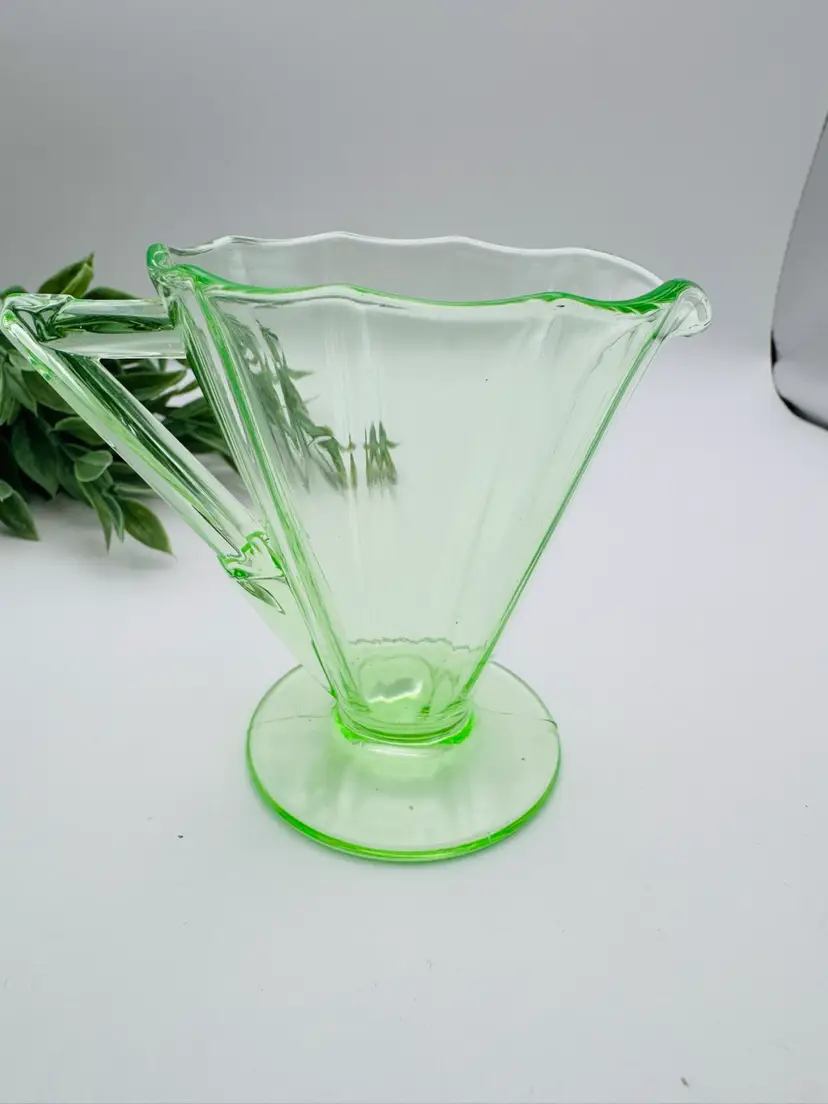 This is a Cambridge uranium glass creamer only. Great shape. See photos, a crescent shaped mark on one side(manufacturing error) is felt outside but is not a crack.