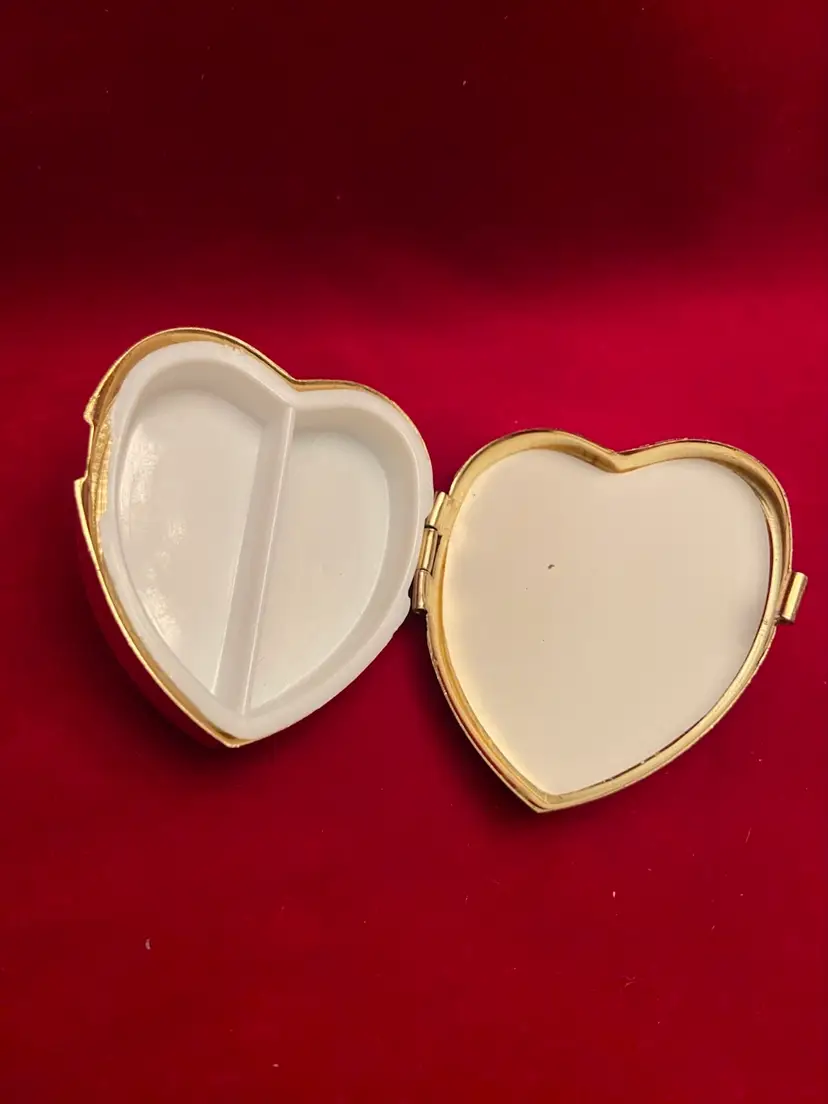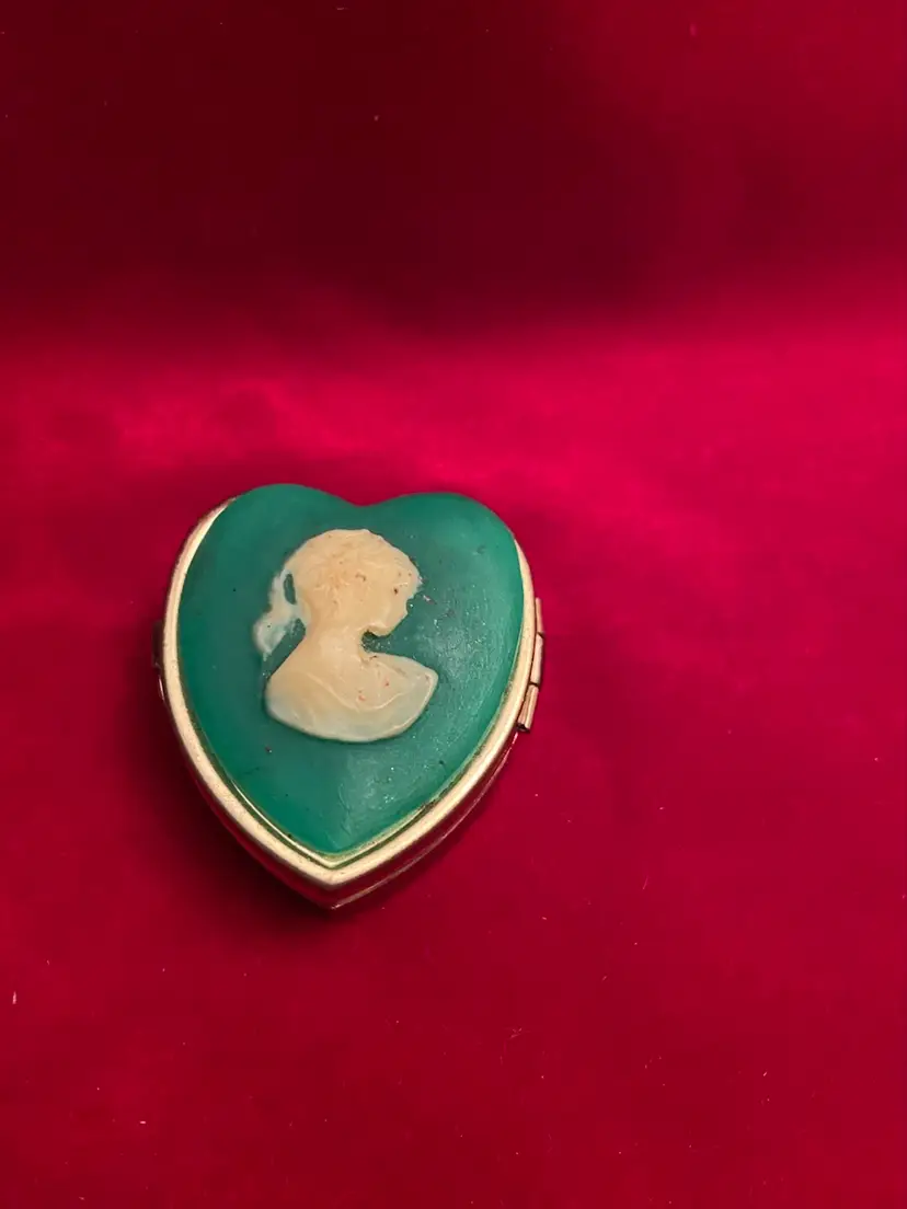 Cameo style heart shaped trinket box green lid