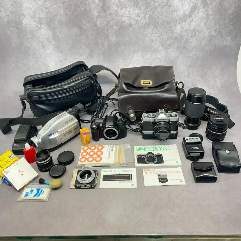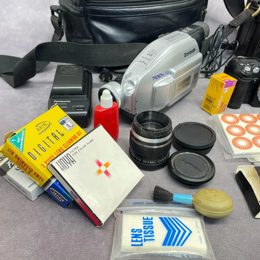 I'm clearing out shelf space to make room for our toy business inventory and thought one of you who are knowledgeable in cameras might be interested in this lot of camera/gear.