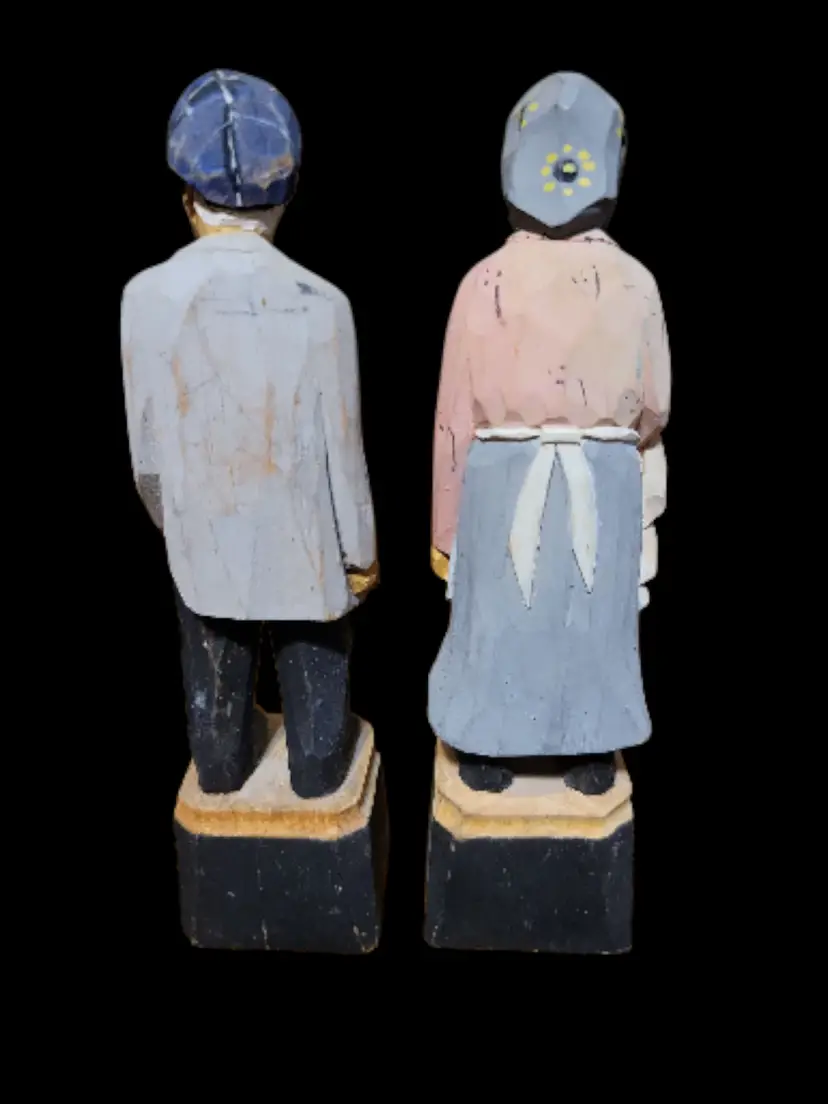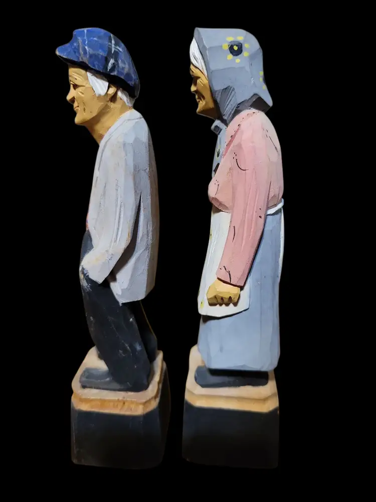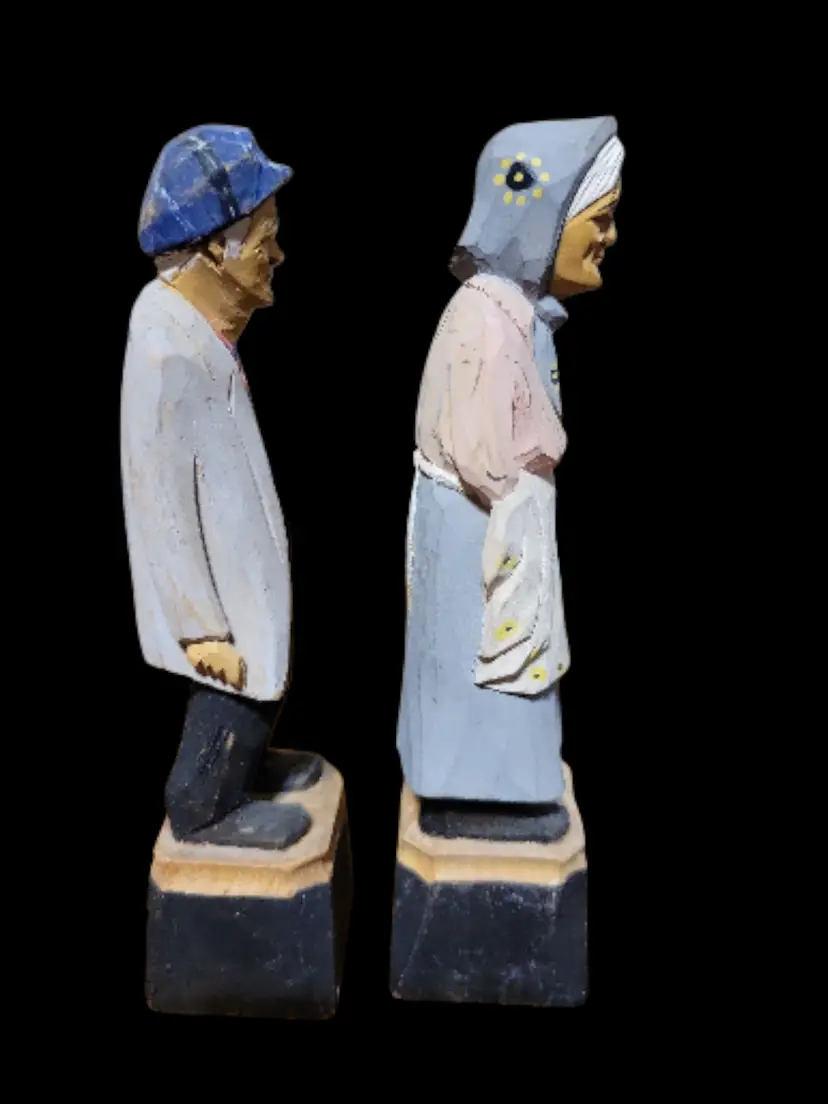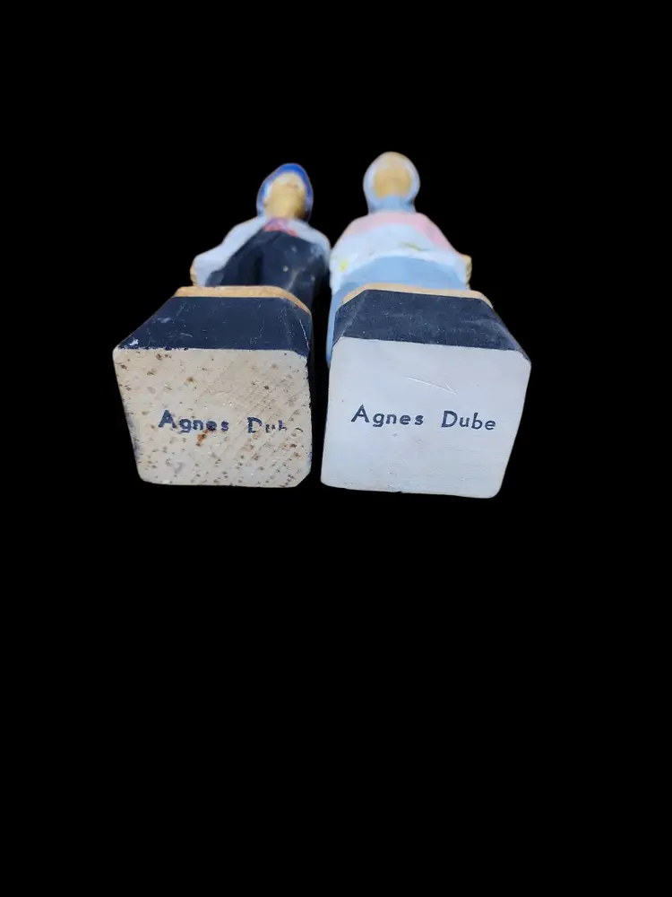 Canadian folk art hand carved by agnes dube 2 figurine 6.5" t x 2" w