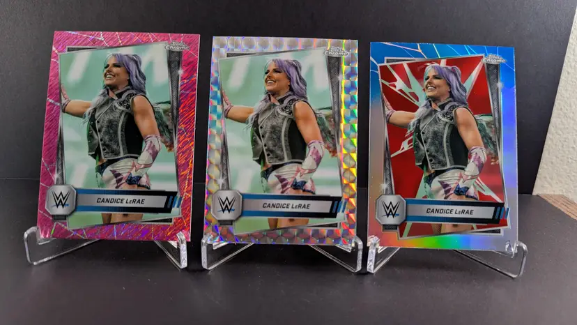 Candice LeRae 2025 WWE Topps Chrome PINK SHIMMER Refractor Candice LeRae 2025 WWE Topps Chrome Prism Refractor Candice LeRae 2025 WWE Topps Chrome Blue Silver