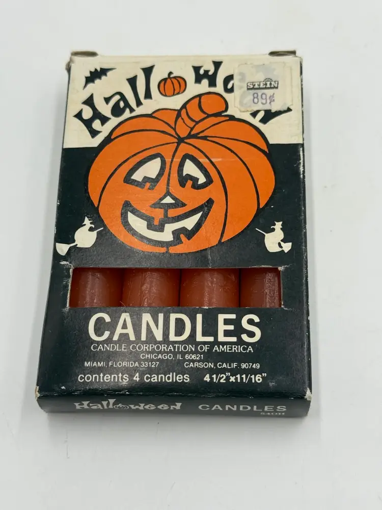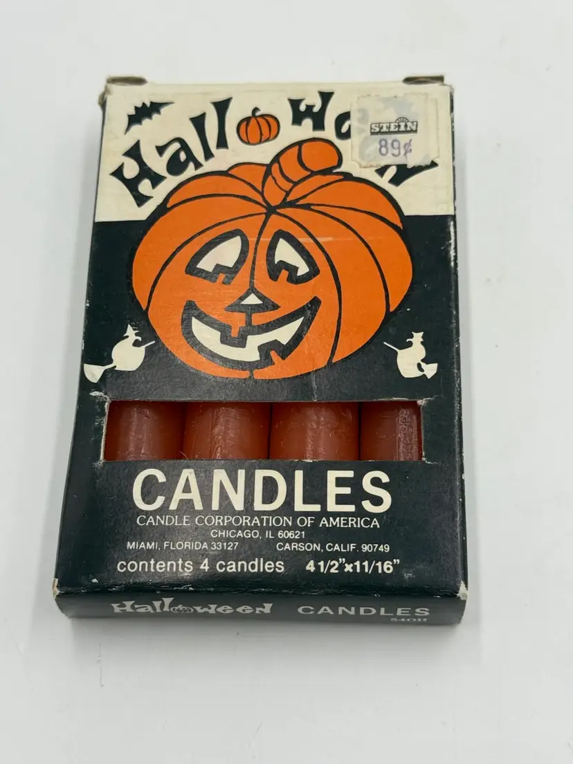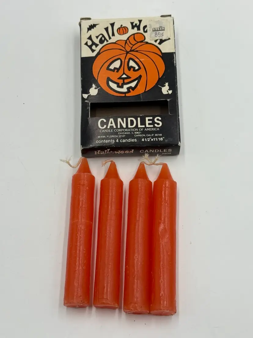 In good, unused condition. Has the original box. One candle has a crack on it. Measure 4 1/2 inches tall and 11/16 inches in diameter.