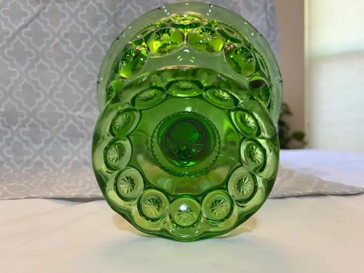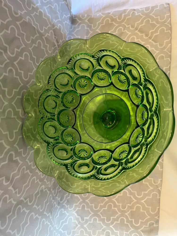 L.E. Smith Green Moon & Stars Centerpiece Candy Bowl