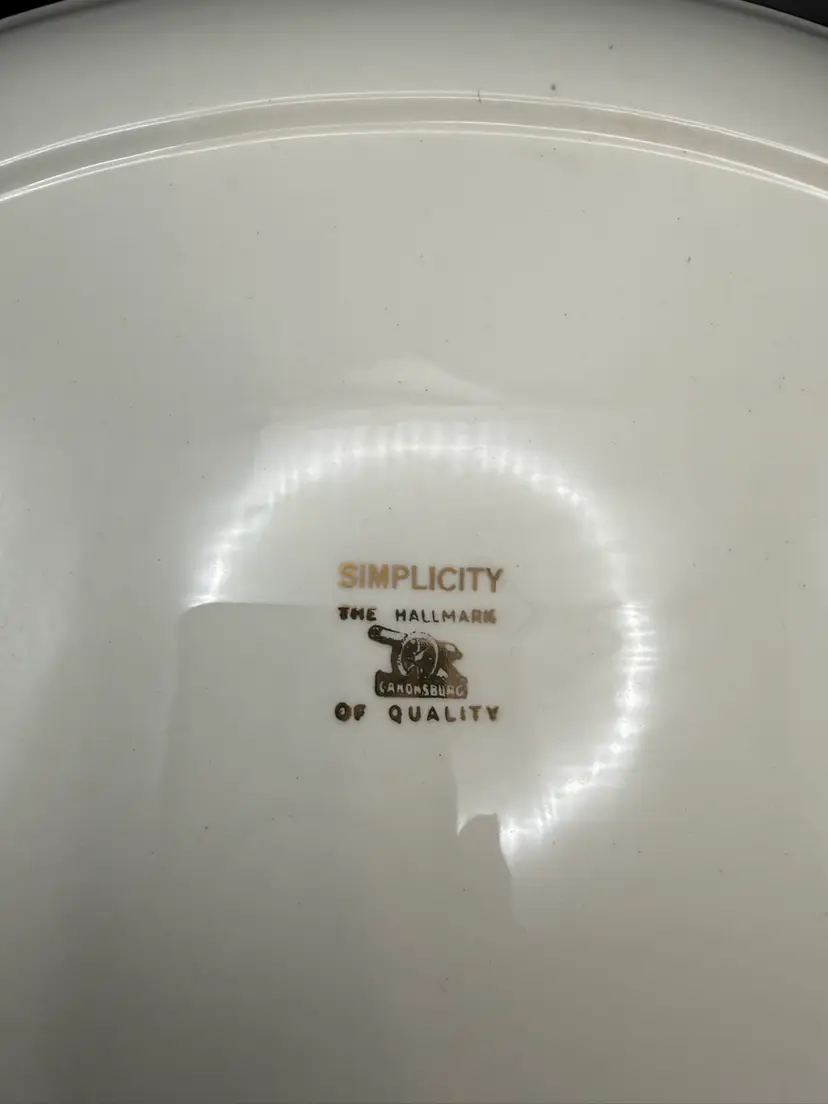 Canonsburg Pottery Company was established in Canonsburg, Pennsylvania, in 1903 and operated until 1978. Their "Simplicity" line, in particular, was popular for its practical design and decorative appeal, making it a common sight in American households throughout the mid-20th century. associated with American potteries of that era.