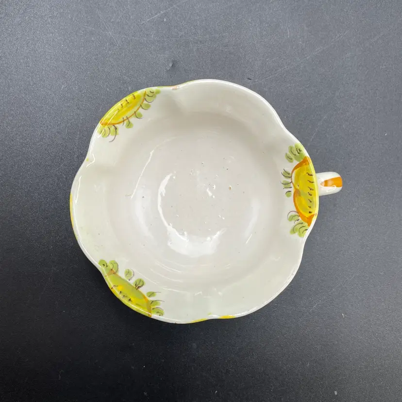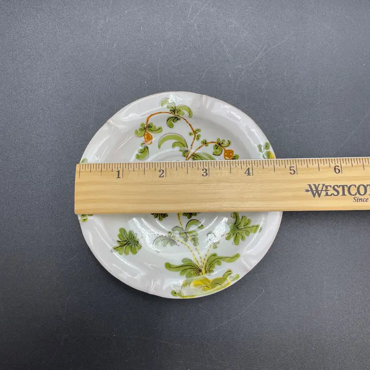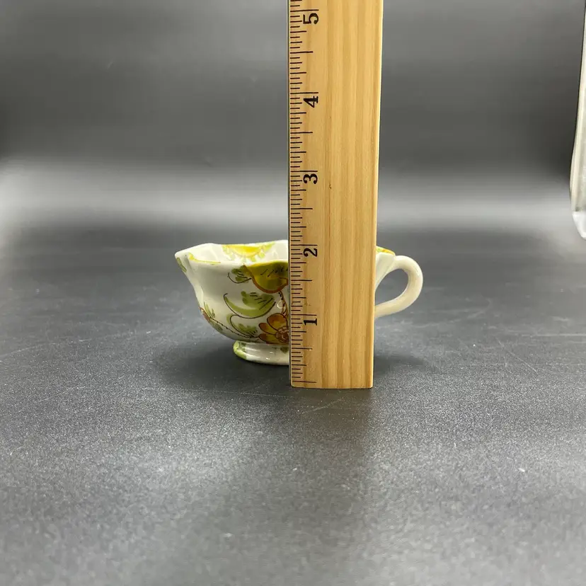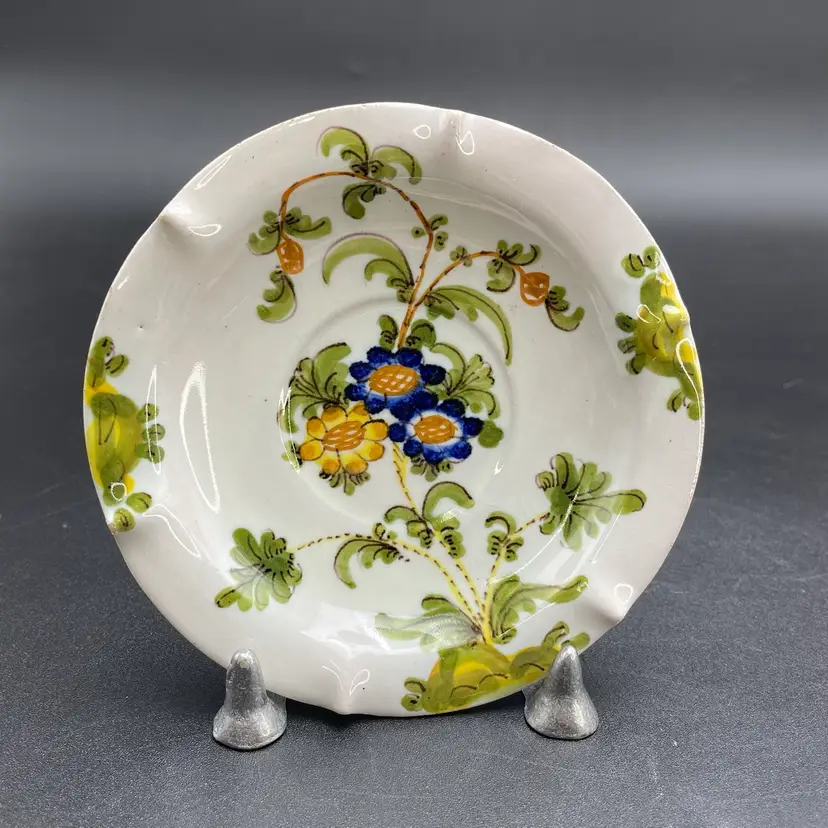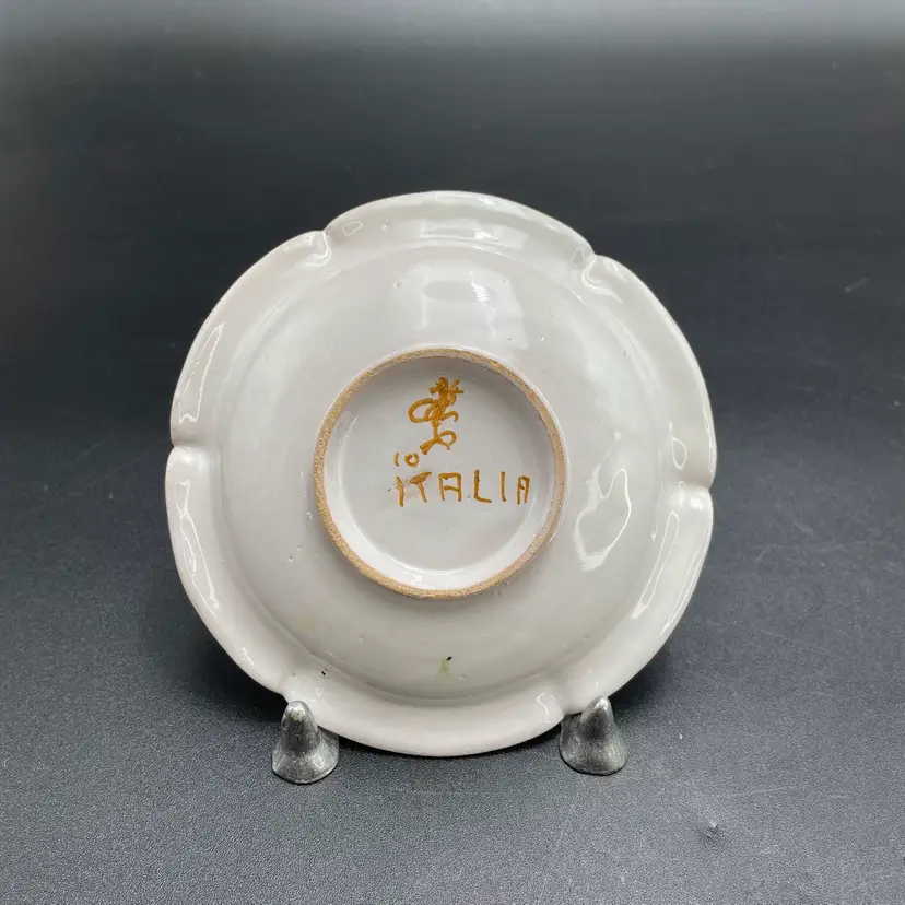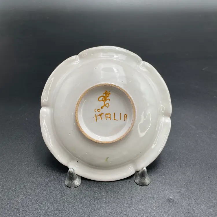 This is a matching antique (1890-1920) Cantagalli Firenze Italian floral majolica pottery teacup and saucer. The cup measures approximately 2" tall x 3.5" across the top, and holds approximately 4fl oz. The saucer is approximately 4.5" in diameter. Each has the cockerel signature, and the saucer is marked Italia. No major flaws.