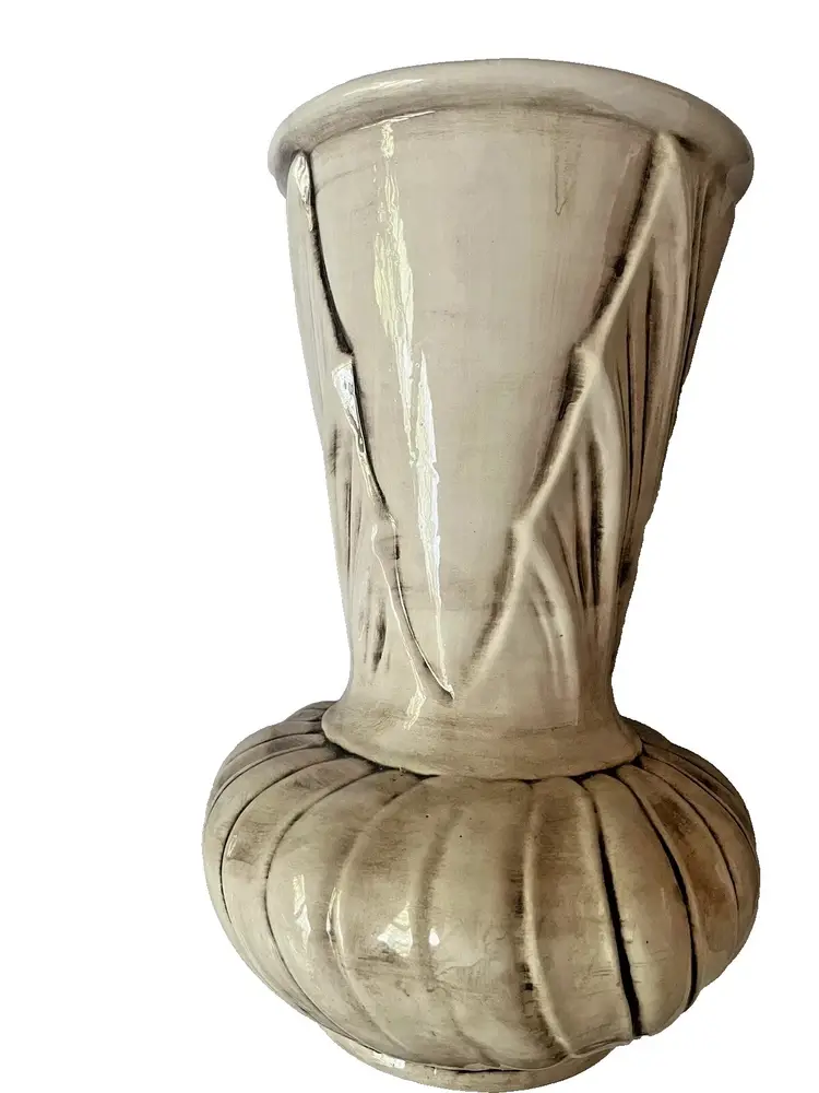 The Capodimonte MCM Italy Porcelain Vintage Large 15”Tall Vase is a beautiful and elegant piece of art pottery handcrafted in Italy. This vase features a stunning floral pattern and a glossy finish, adding a touch of vintage charm to any decor. Made of high-quality porcelain, it stands at 15 inches tall, making it a striking statement piece for showcasing flowers or as a standalone decorative accent. With its original production style and technique, this vase embodies the artistry and craftsmanship of Capodimonte.