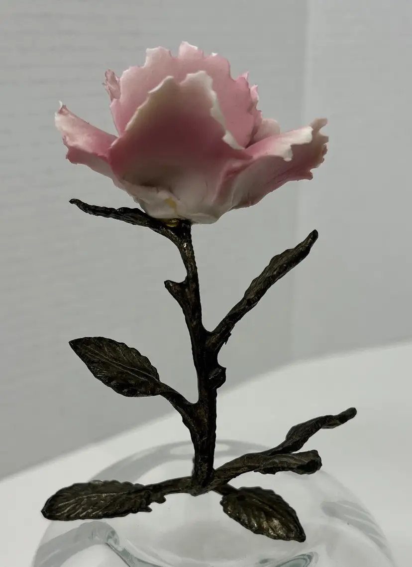 Pink Porcelain Rose on Brass(?) Heavy Metal Stem