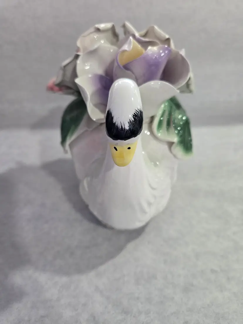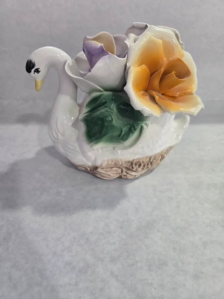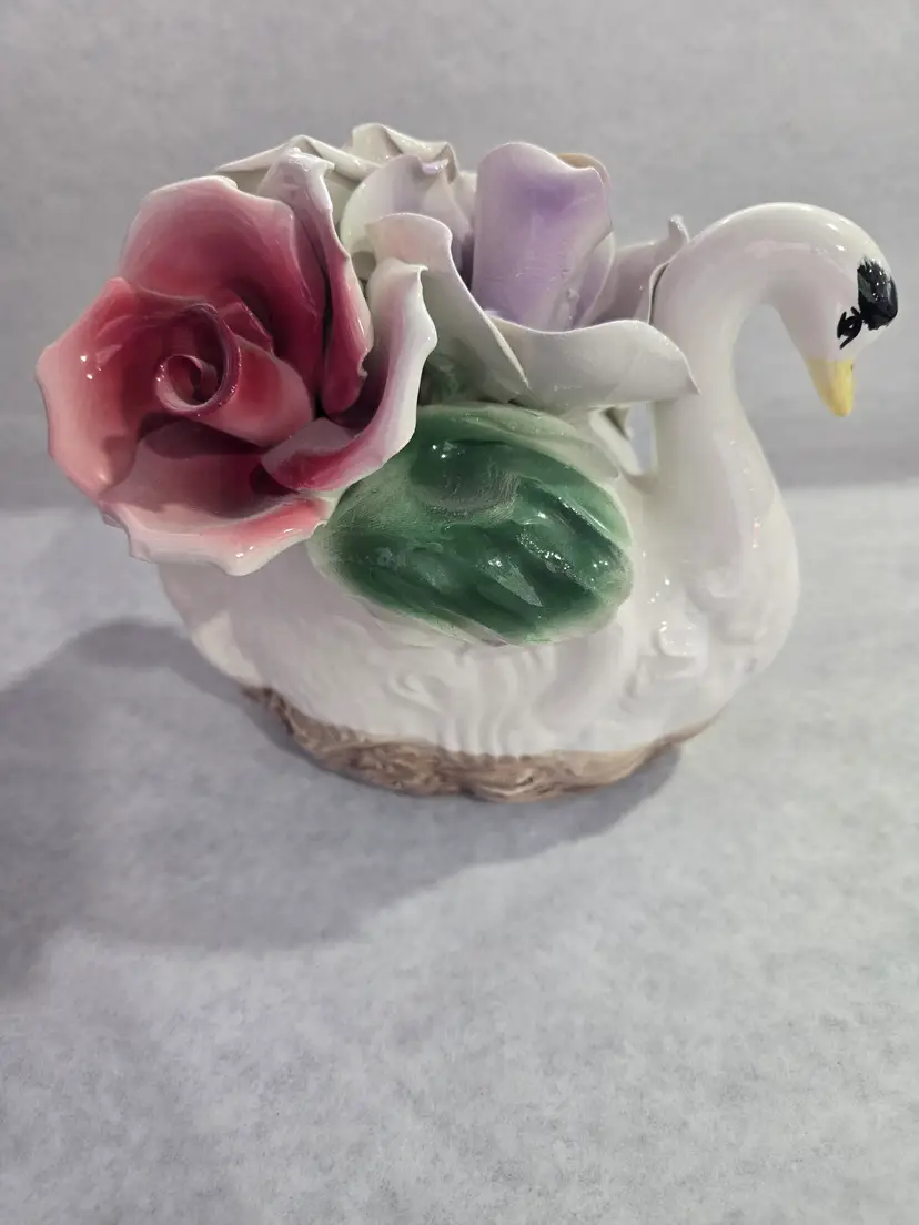 This beautiful Capodimonte swan has three large roses on it's back. The only defect is a very small chip on the red rose.