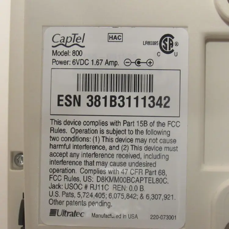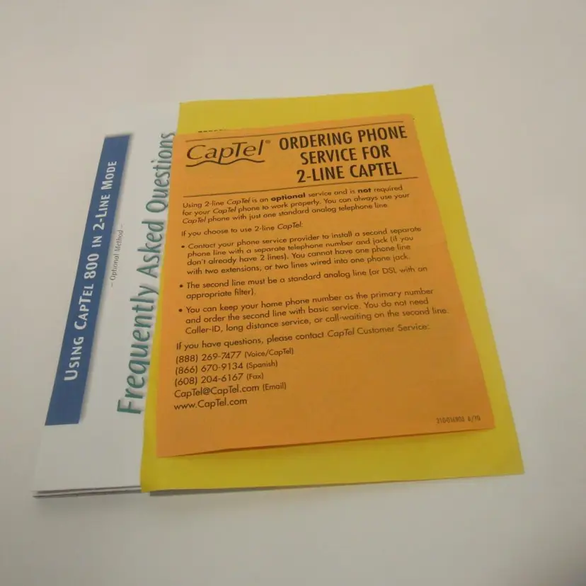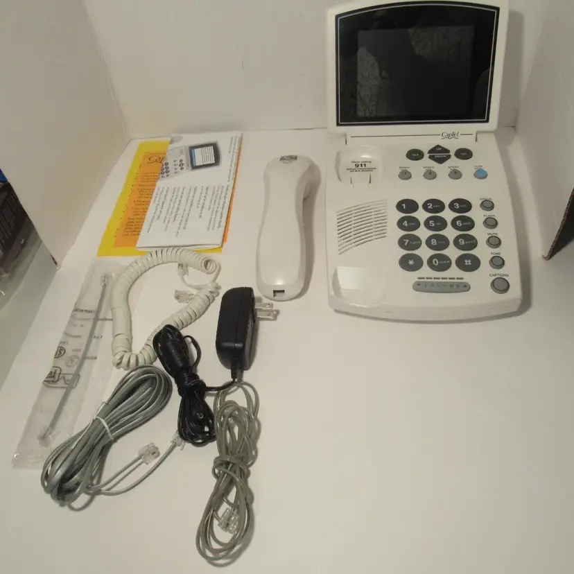 Pre-owned -Tested and Working *Second line is optional, but telephone has the ability to access closed caption calls from the second line. *Consists of Captel 800 phone base, handset, handset cord, power adapter, and (3) telephone cords. Original Box is damaged, but is usable. There is no manual, but pamphlet information regarding phone. *(See all pictures for further clarification and description.)