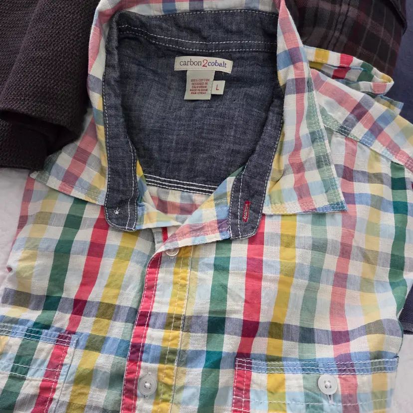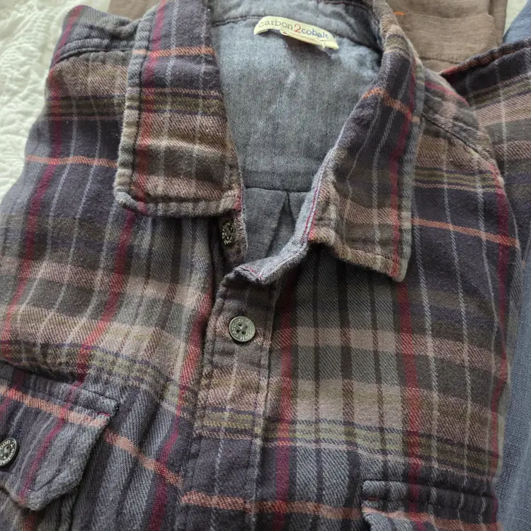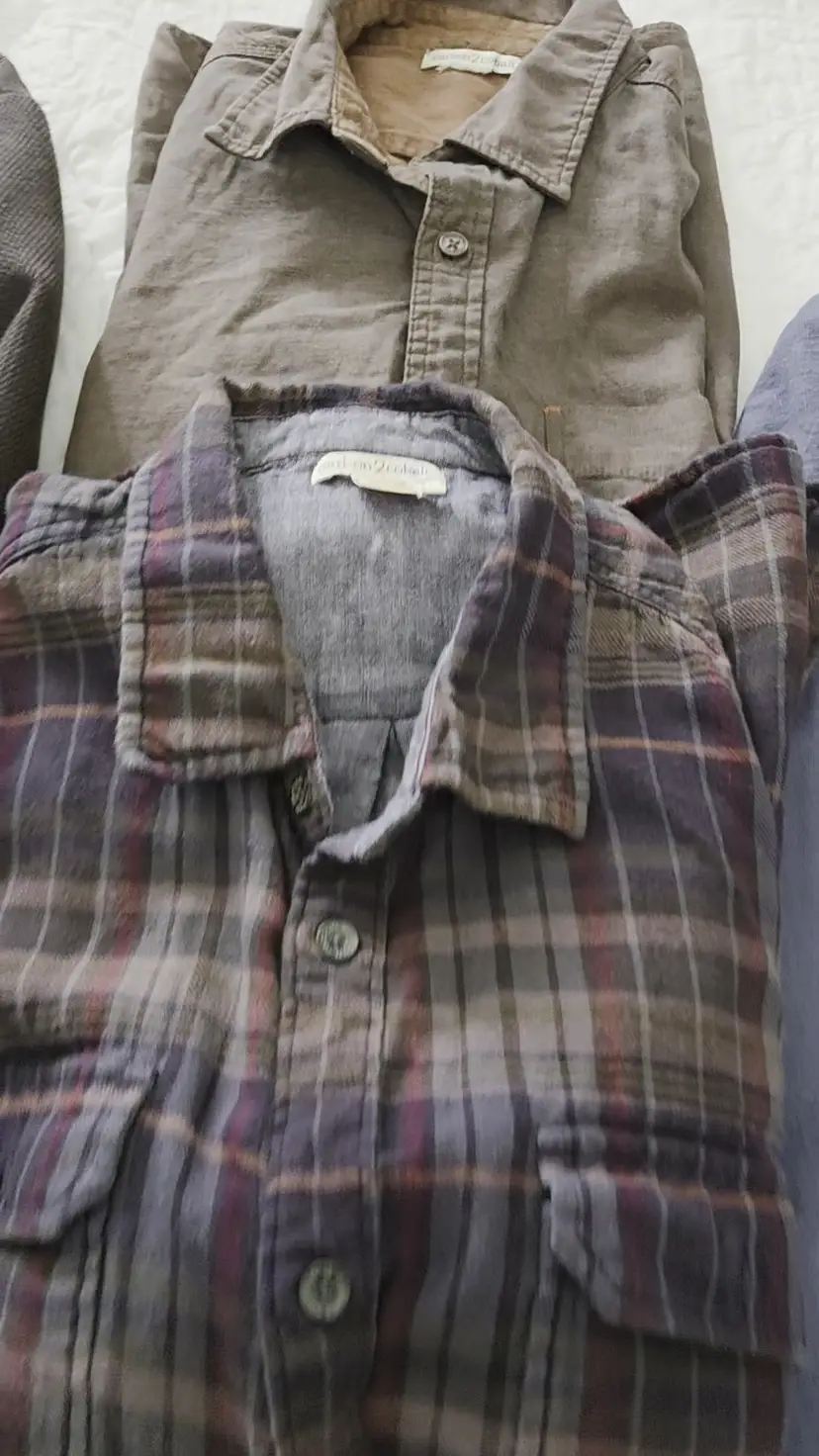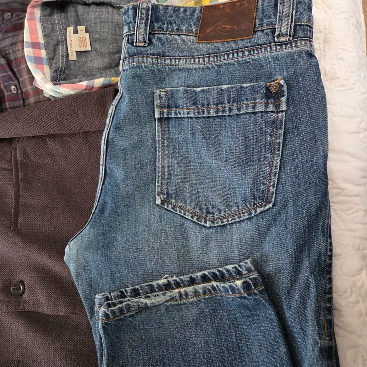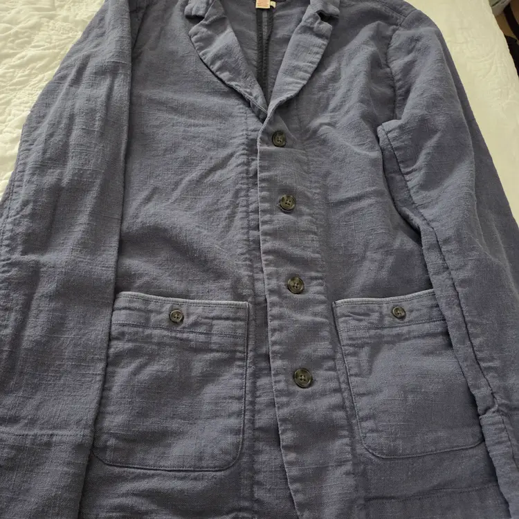 All size large- linen blend blazer, cotton poly blazer, 3 long sleeve shirts, 1 pair of jeans size 35. Any flaws are pictured.