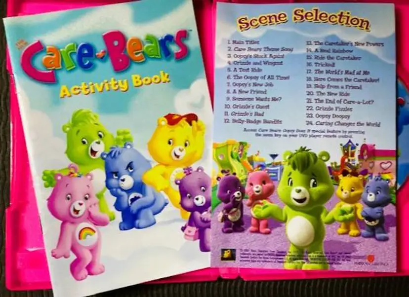 Care Bears Journey to Joke-a-lot DVD Movie – The Care Bars First CGI Animated Movie with Care Bears Activity Book. "When one of his jokes goes wrong, Funshine Bear leaves Care-a-lot to find a place where his sense of humor will be appreciated... Worried about their lost friend, Tenderheart, Cheer Bear and other Care Bears track down Funshine and plead with him to return home... " Special features include: Full Screen Version, Deleted Scenes, Sing-Alongs, DVD Fun Stuff, Trailers.