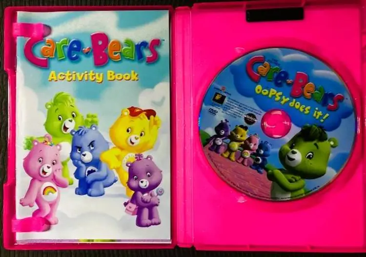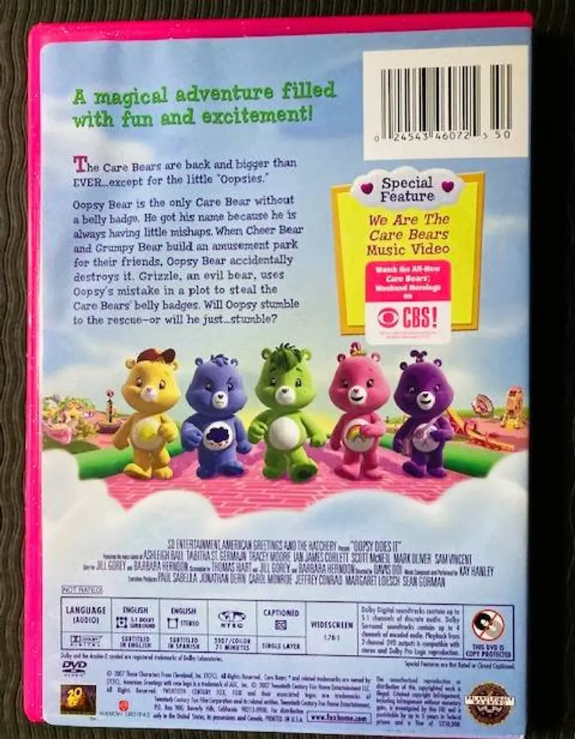 The All-New Care Bears in Oopsy Does It! - DVD with Care Bears Activity Book. "Oopsy Bear is the only Care Bear without a belly badge. He got his name because he is always having little mishaps. When Cheer Bear and Grumpy Bear build an amusement park for their friends, Oopsy Bear accidentally destroys it. Grizzle, an evil bear, uses Oopsy's mistake in a plot to steal the Care Bears' belly badges... "